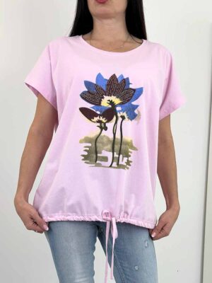 BLUZKA T-SHIRT AMIRO szara z różem
