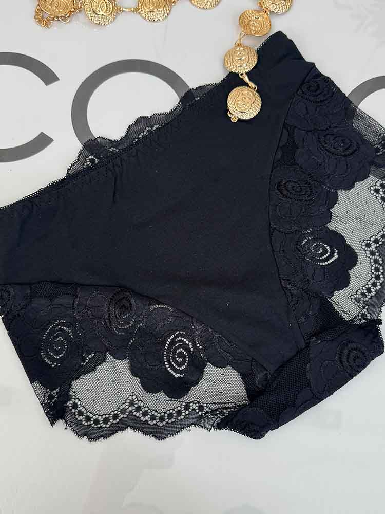 Sklep / Dodatki / Bielizna / Majtki Bawełniane GŁADKIE z Koronką CZARNE