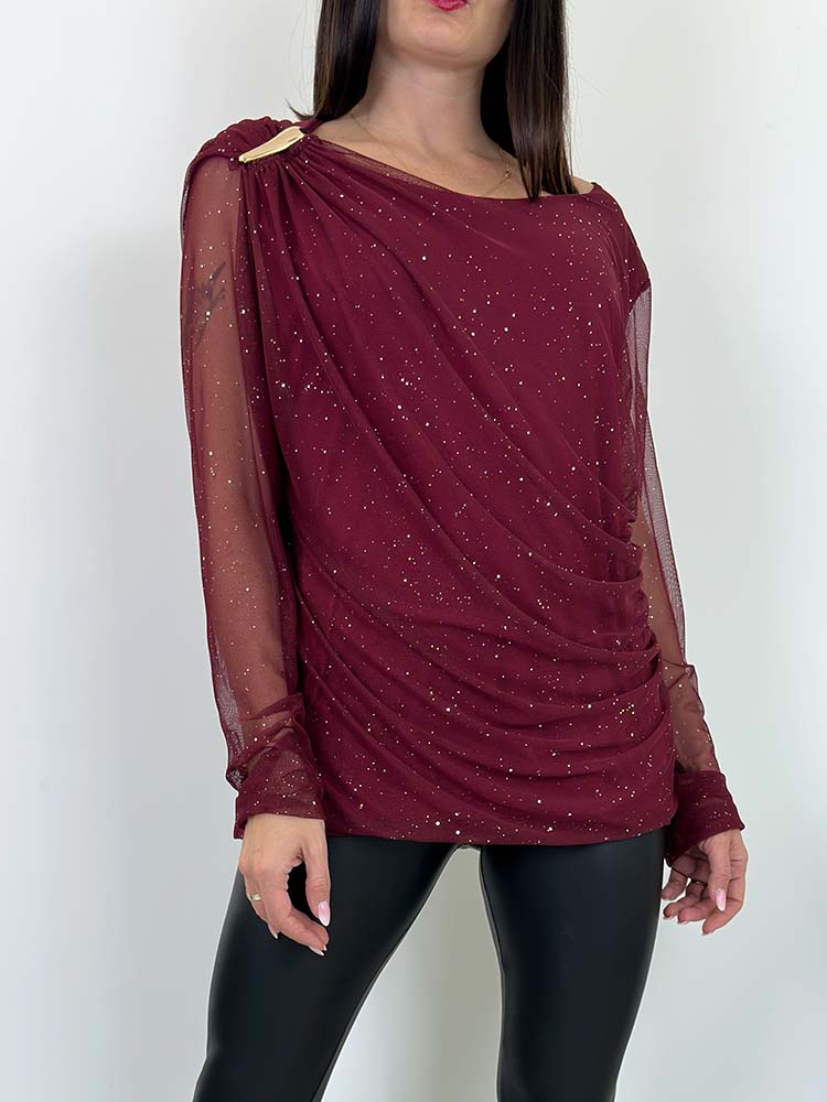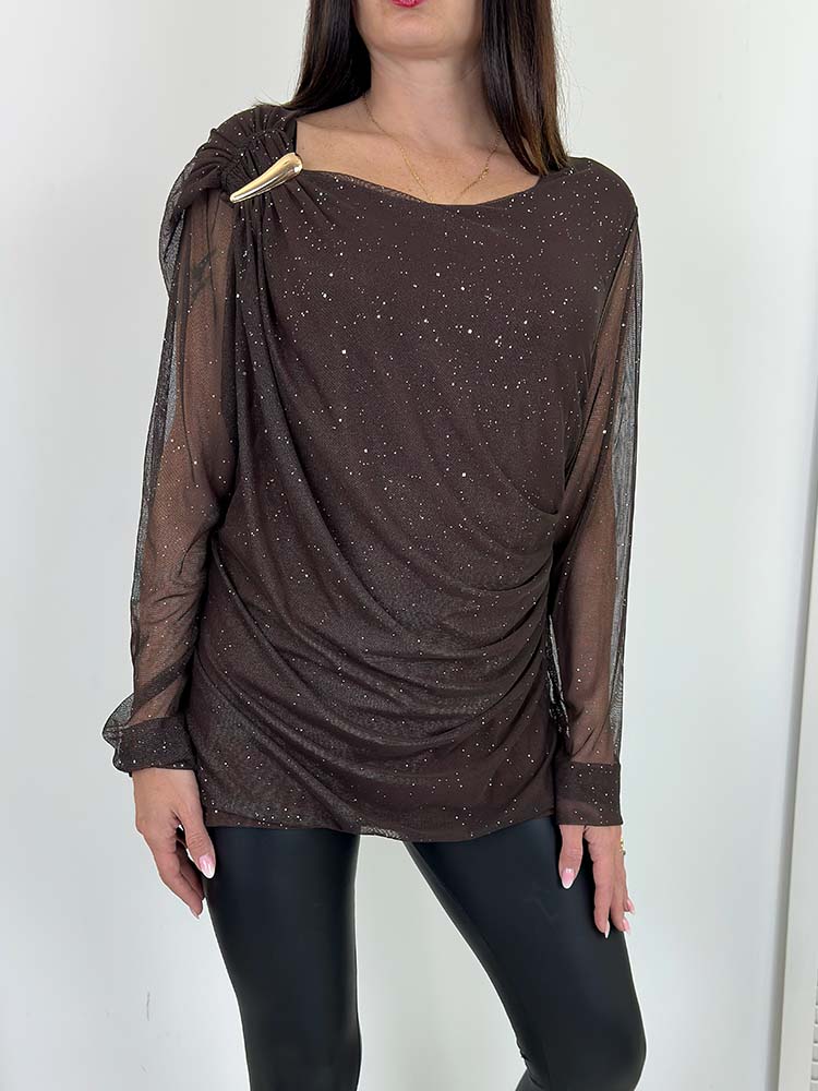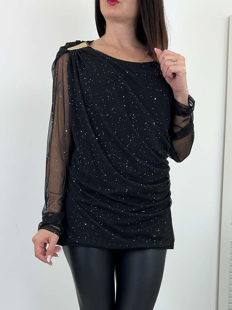 Sklep / Moda / Bluzki / ANNY bluzka z marszczeniami i połyskiem czarna