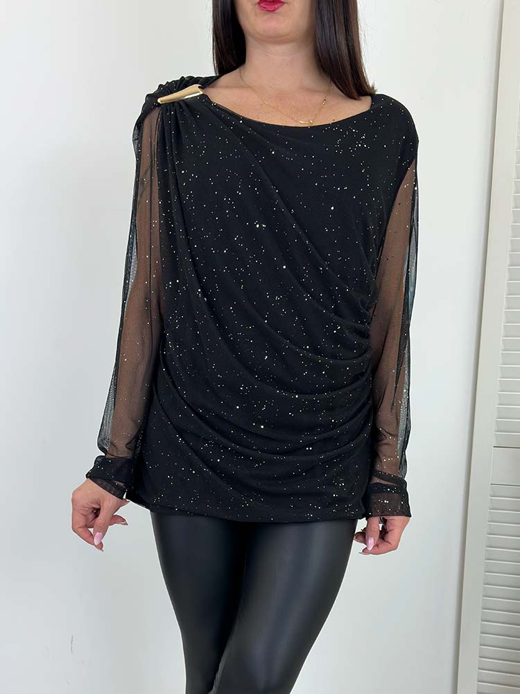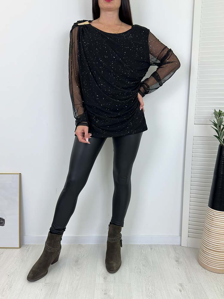 ANNY bluzka z marszczeniami i połyskiem czarna