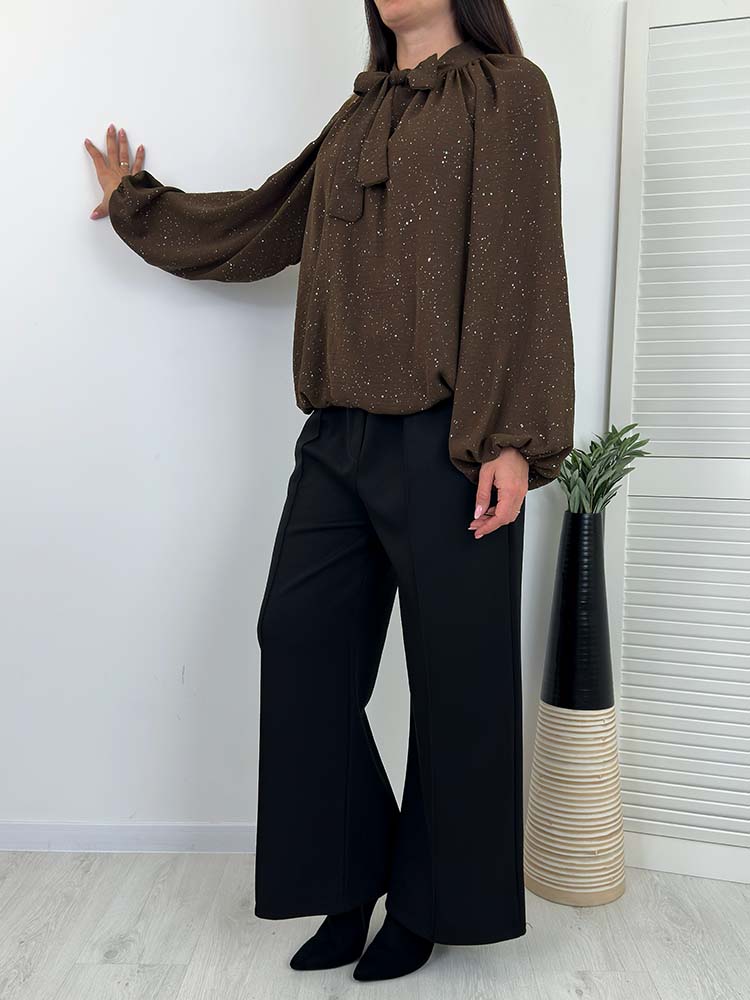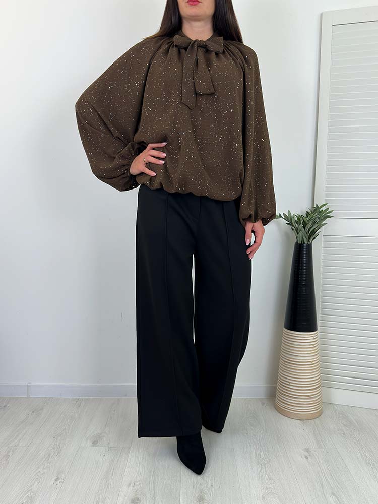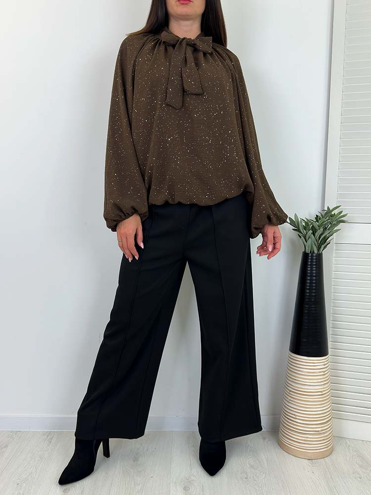 Sklep / Moda / Bluzki / BLUZKA ROSA błyszcząca z kokardką czekoladowa