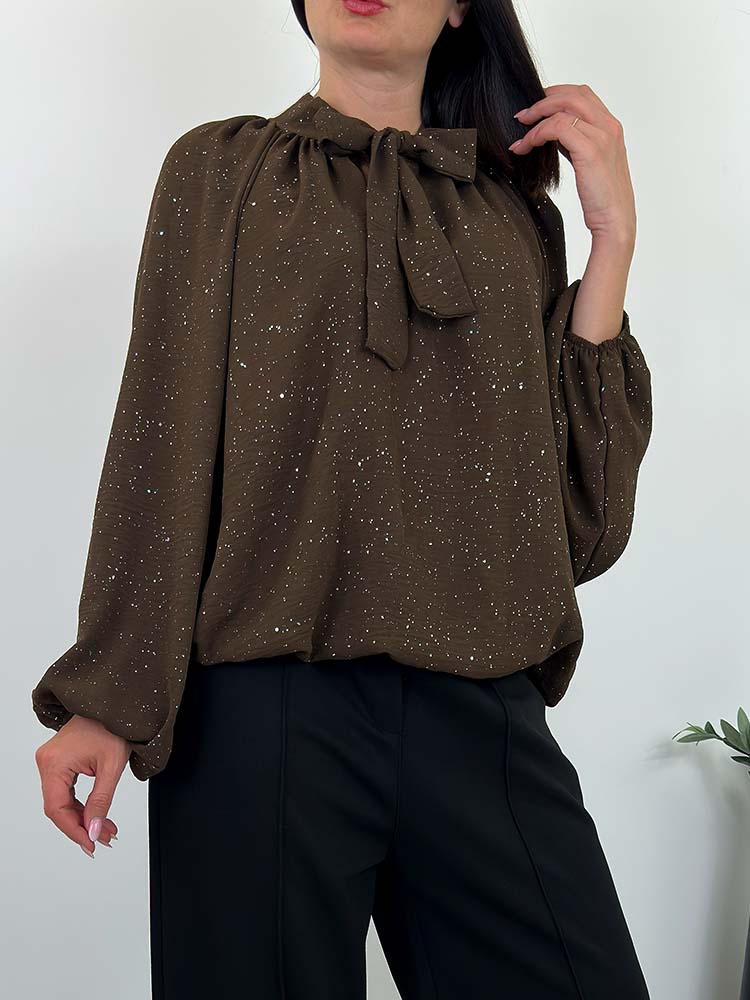 BLUZKA ROSA błyszcząca z kokardką czekoladowa