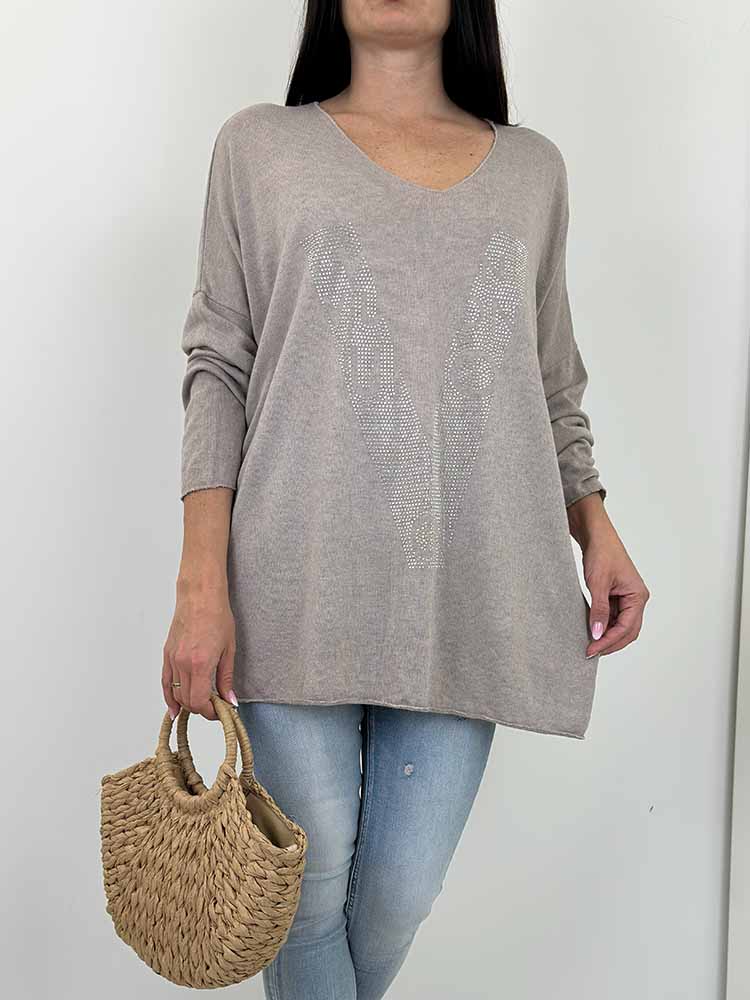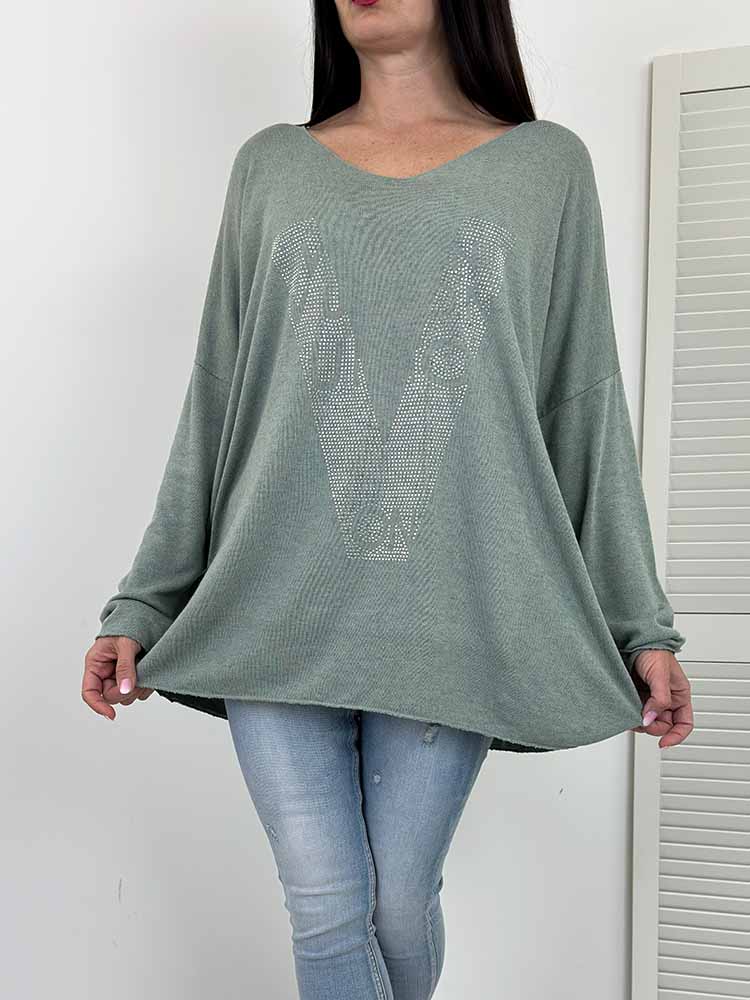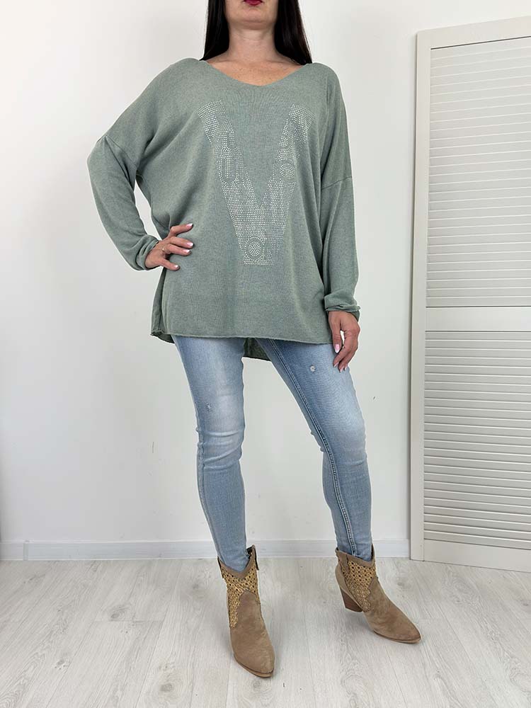 Sklep / Moda / Swetry / BLUZKA sweterek WIKI cekiny khaki duży rozmiar