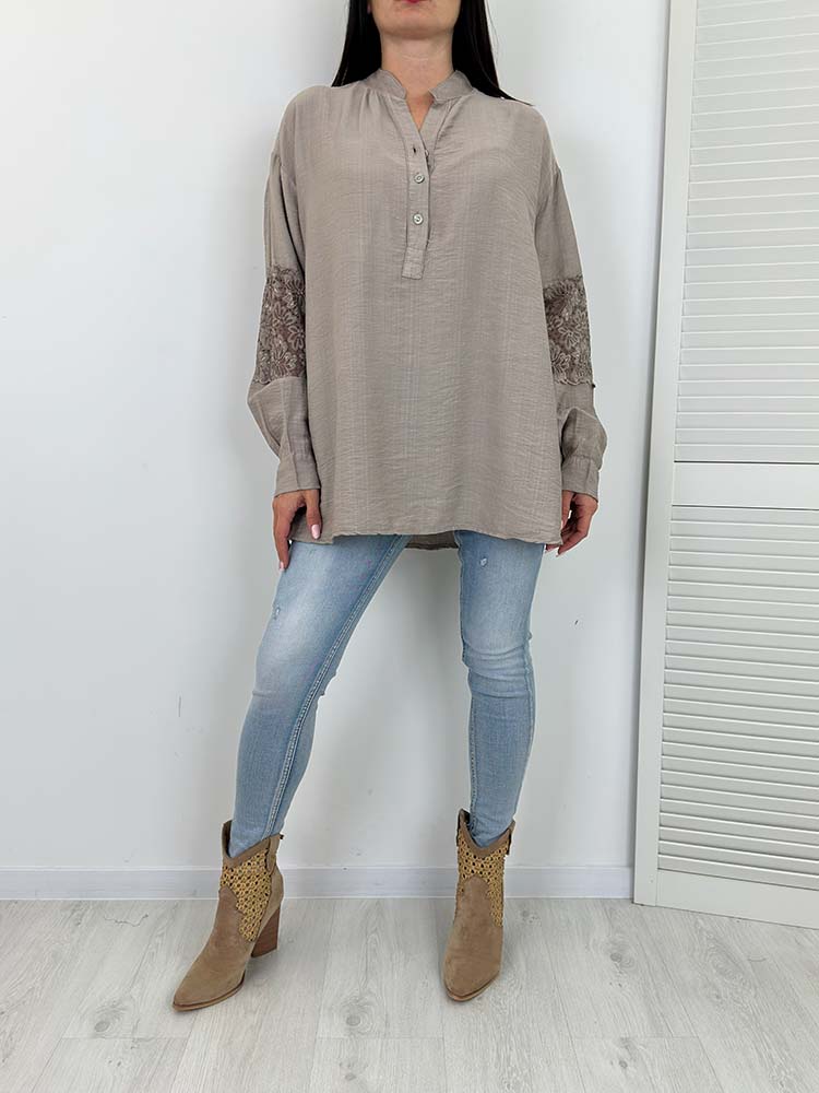 KAJA KOSZULA BAWEŁNIANA Z KORONKĄ fango
