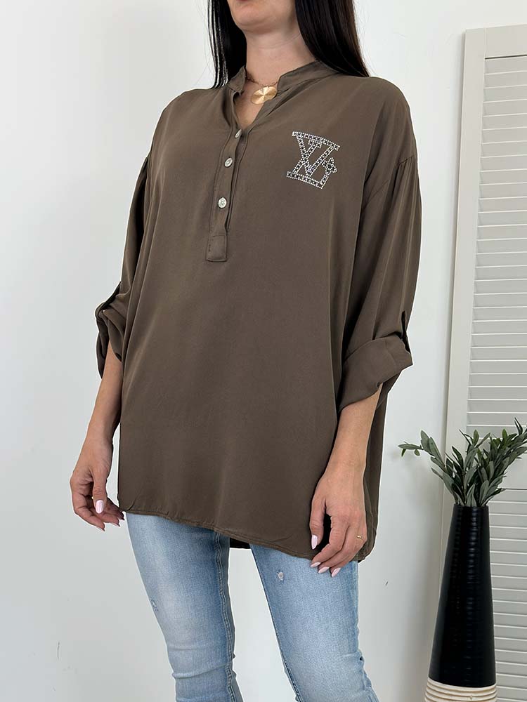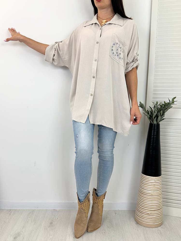 To luźny krój zapinany na guziczki .Bardzo wygodna modna i praktyczna . Idealna na co dzień, do pracy, na spotkanie . Świetnie sprawdzi się botkami lub kozakami ale także ze sportowym obuwiem i legginsami. Mega uniwersalny model. 100% wiskoza. Na kieszonce ozdobne cekiny . Podpinany rękaw.