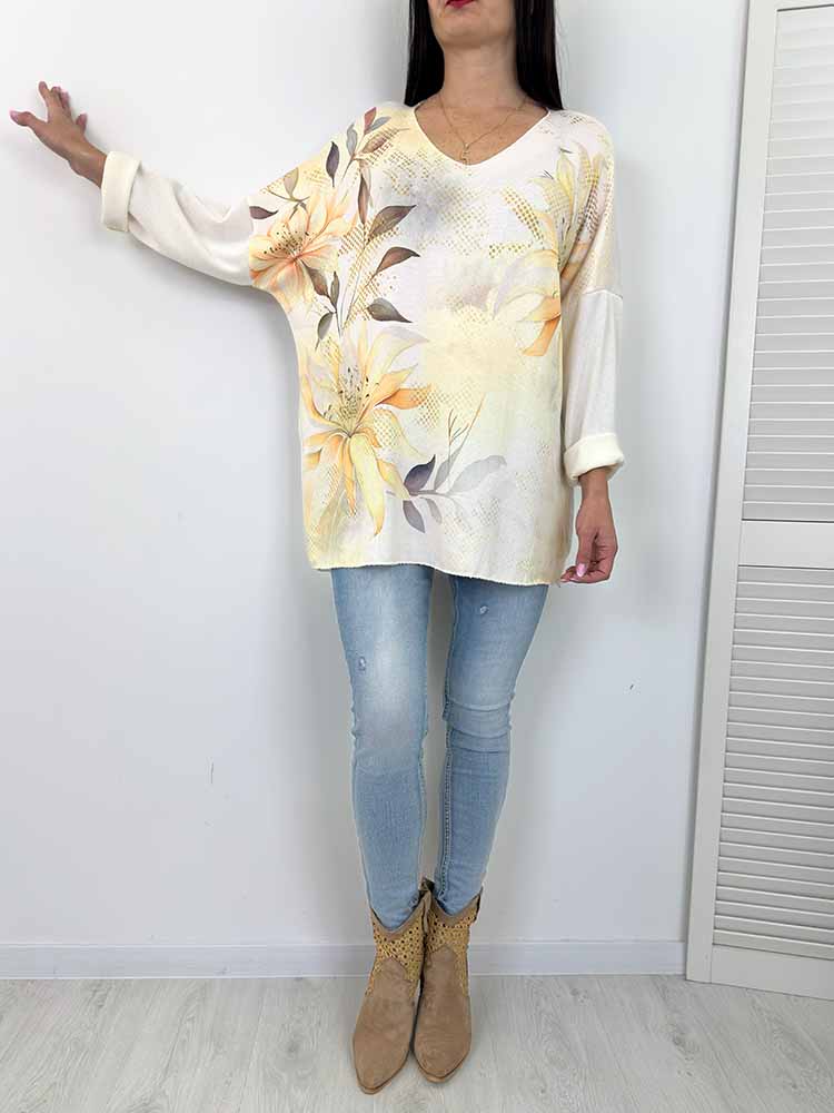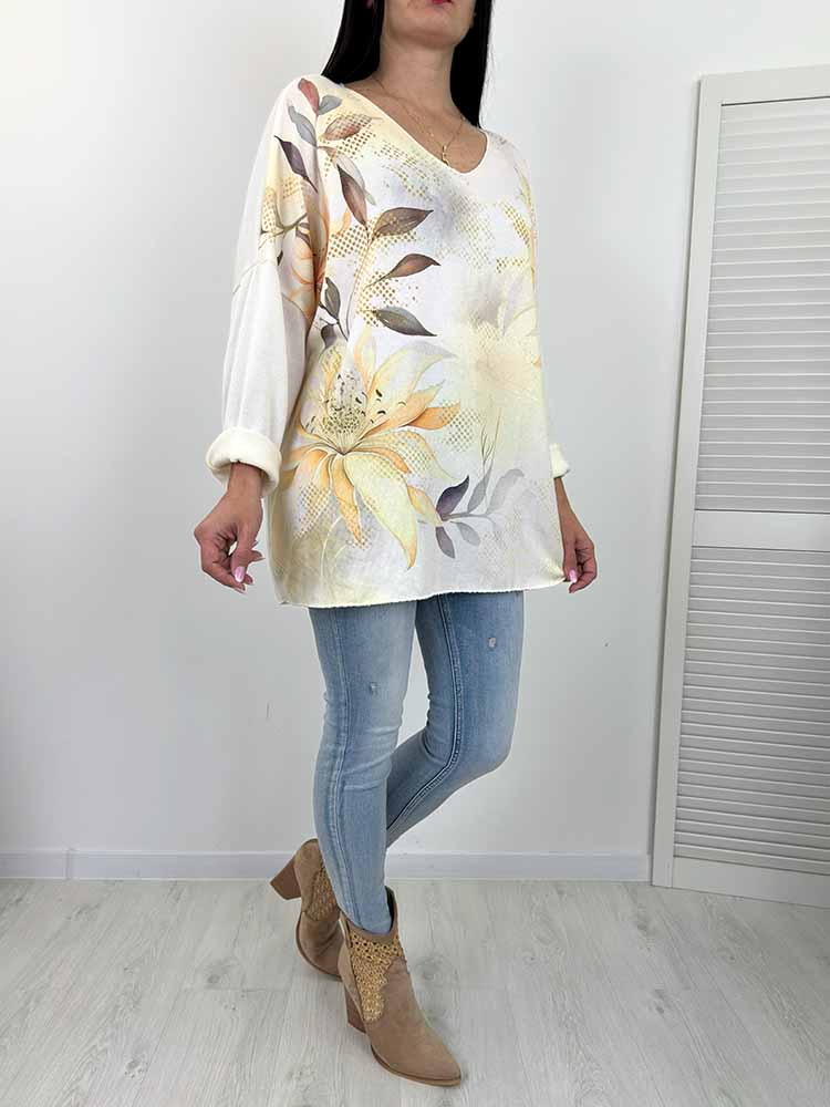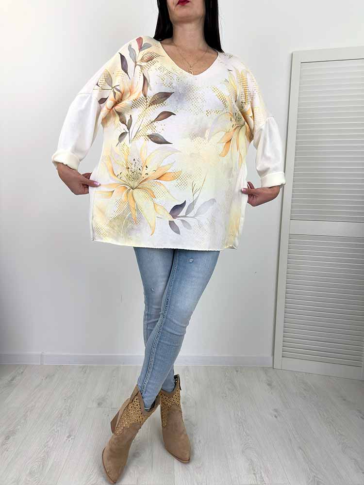 DELIKATNE PASTELOWE KOLOREKI , KRÓJ NIETOPERZ , OVERSIZE, APLIKACJA KWIATÓW