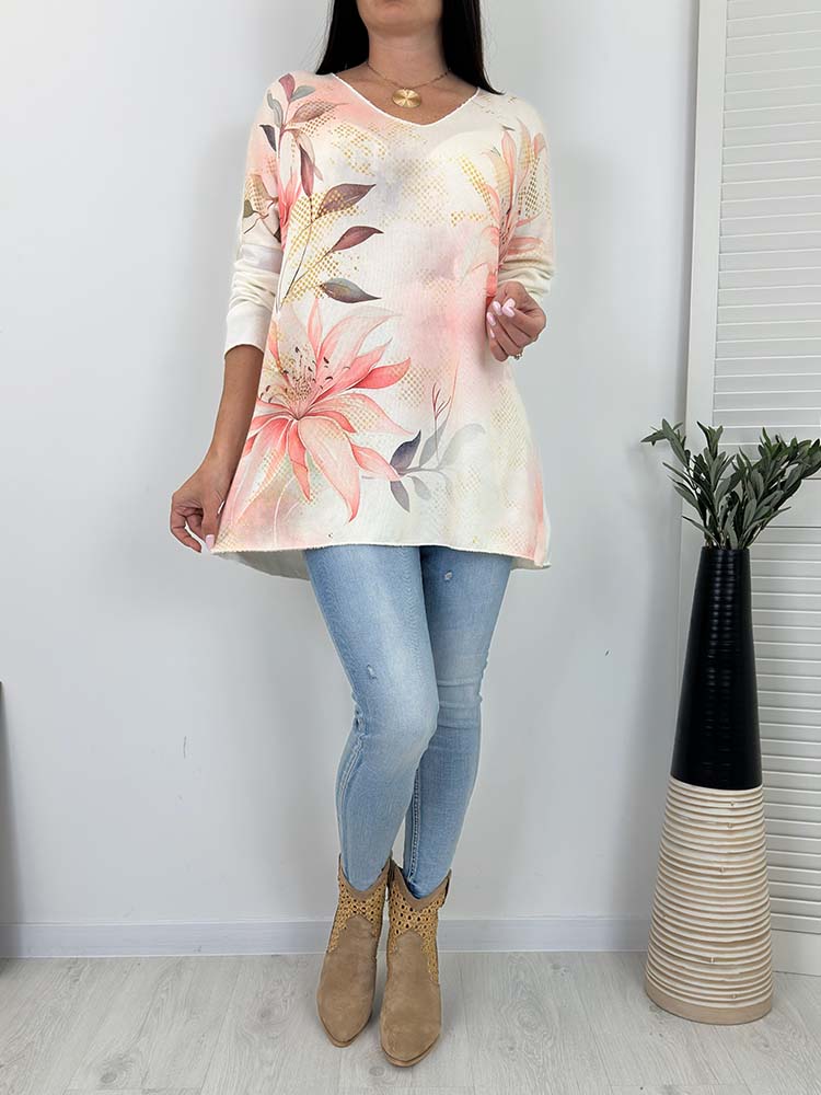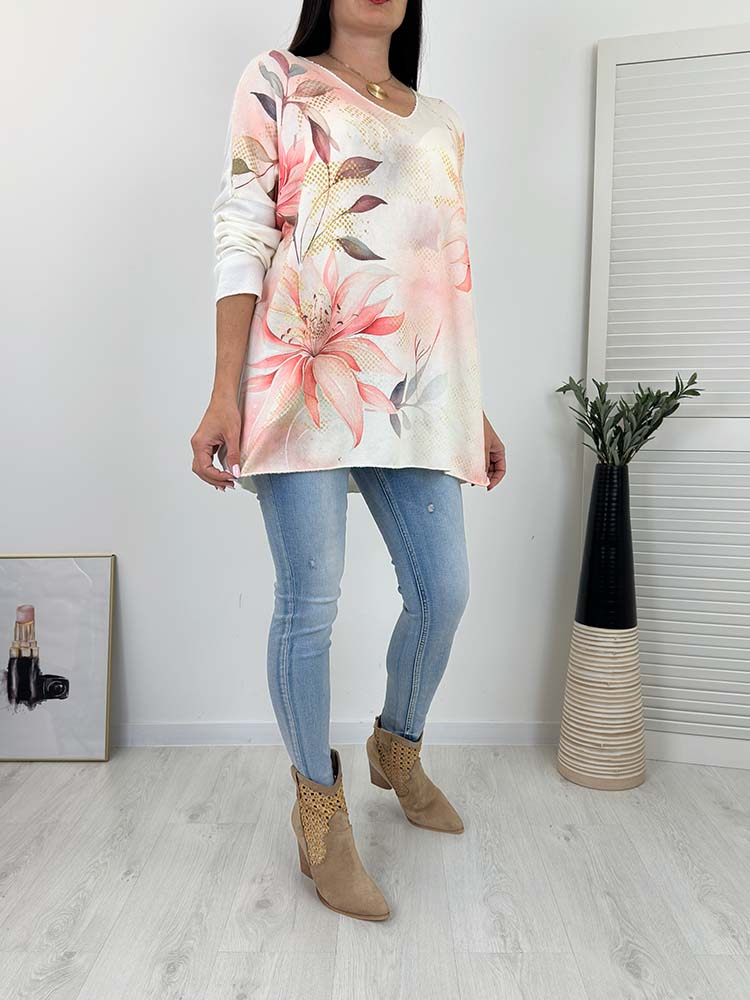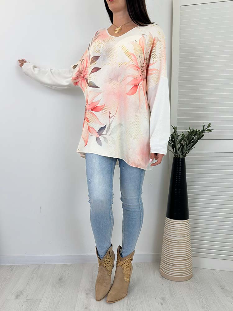 DELIKATNE PASTELOWE KOLOREKI , KRÓJ NIETOPERZ , OVERSIZE, APLIKACJA KWIATÓW