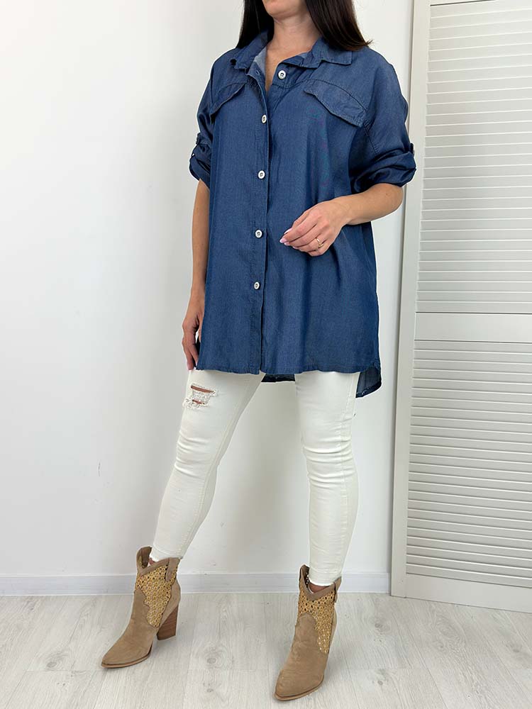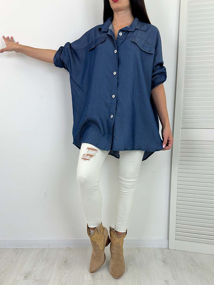 Lubisz jeansowy styl, ale cenisz sobie lekkość i swobodę? Ta koszula oversize z tencelu to idealne połączenie stylu denim z komfortem! Ma wygląd delikatnego jeansu, ale jest znacznie lżejsza, bardziej przewiewna i miękka – pokochasz ją od pierwszego założenia!