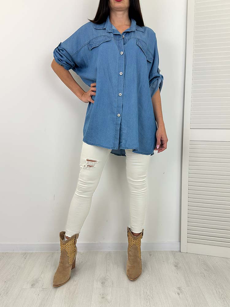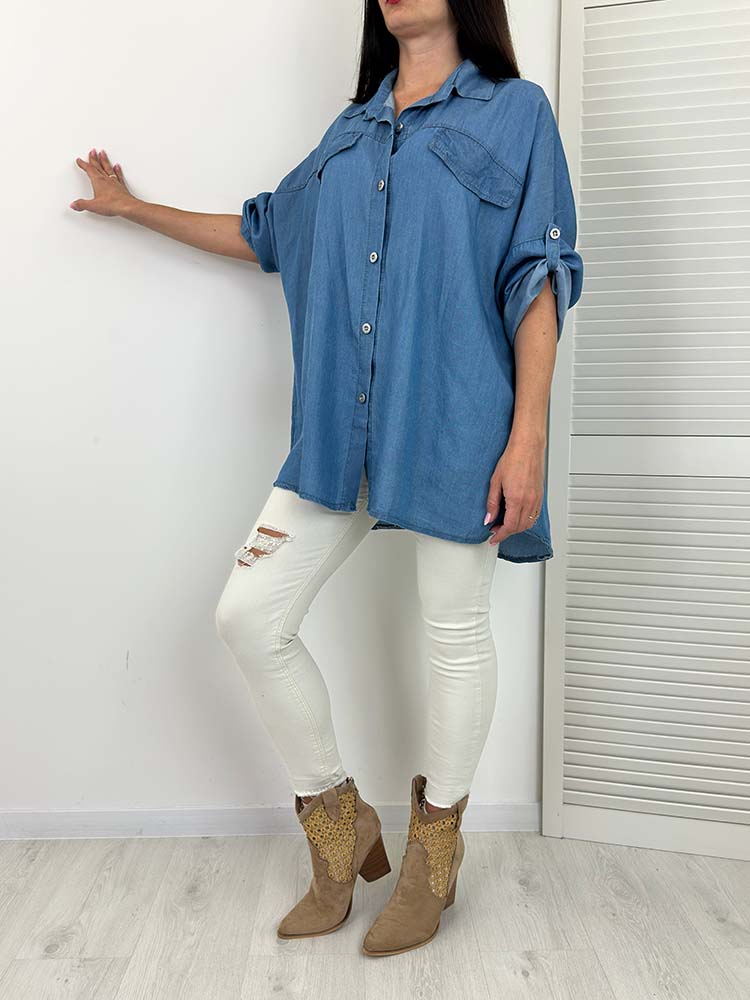 Lubisz jeansowy styl, ale cenisz sobie lekkość i swobodę? Ta koszula oversize z tencelu to idealne połączenie stylu denim z komfortem! Ma wygląd delikatnego jeansu, ale jest znacznie lżejsza, bardziej przewiewna i miękka – pokochasz ją od pierwszego założenia!