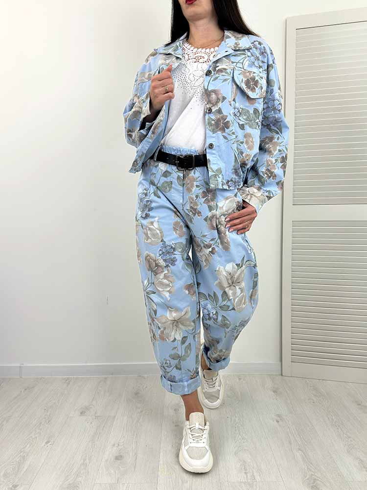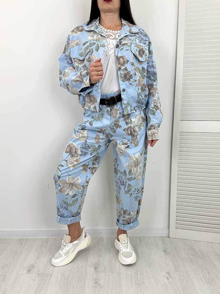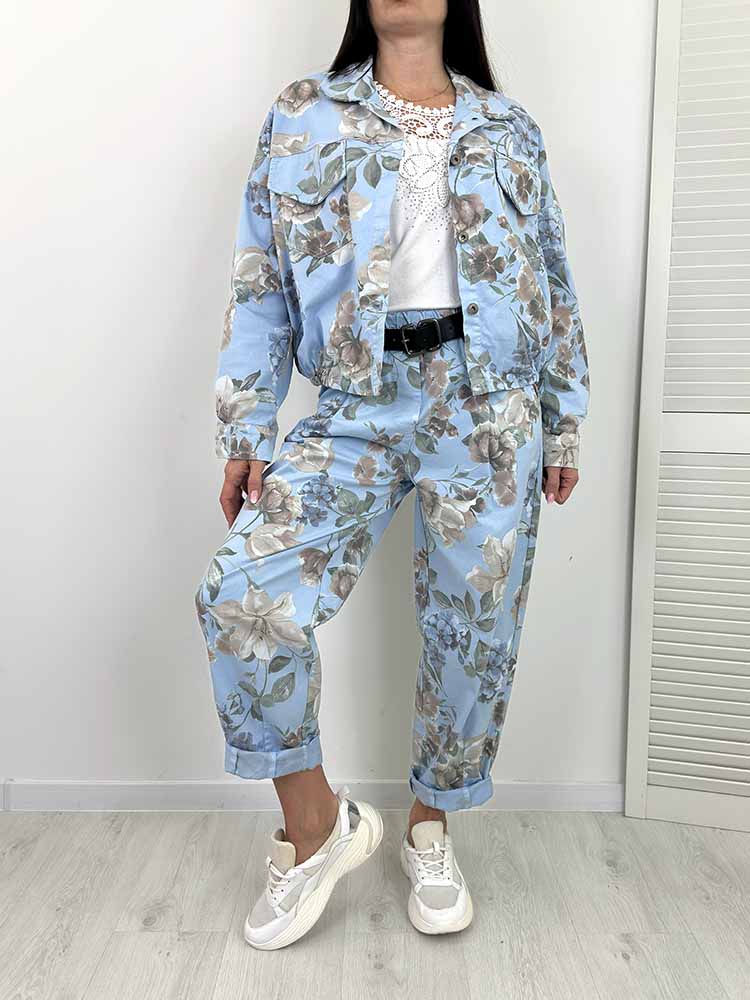KOMPLET W KWIATY SPODNIE + KURTKA W KWIATY