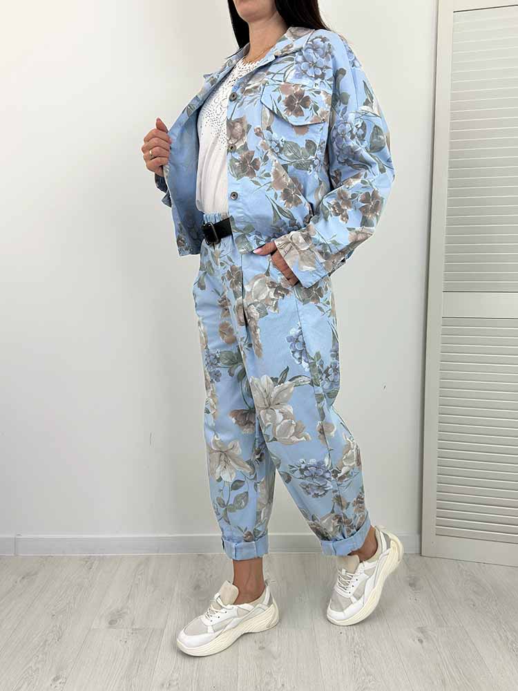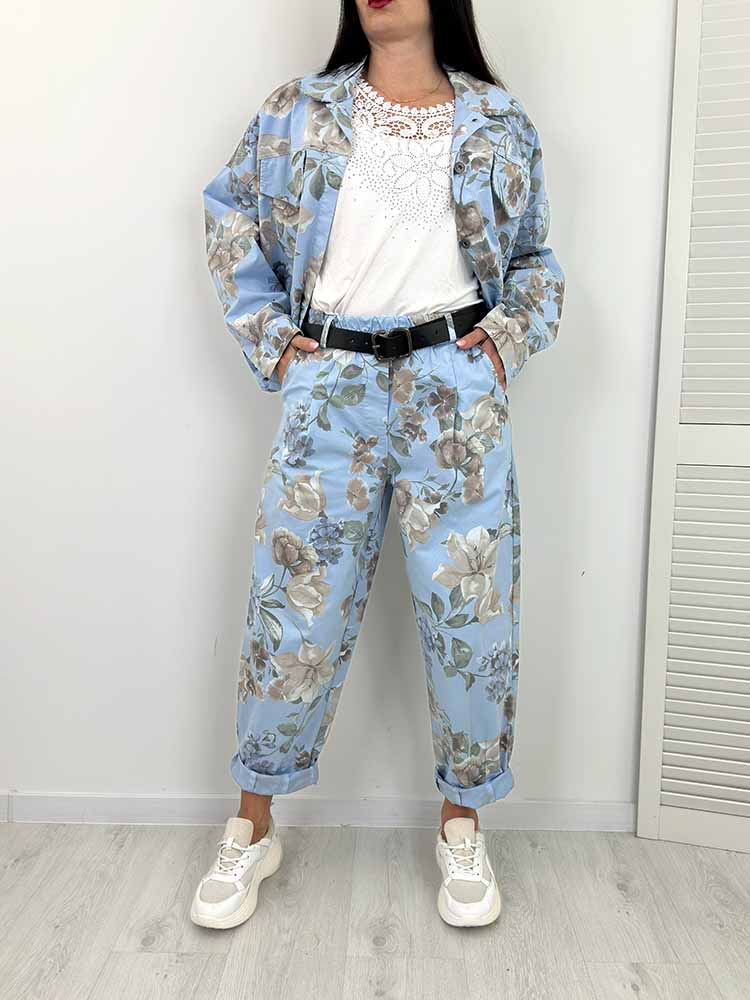 Sklep / Moda / Komplety dresowe / FLEXI KOMPLET w kwiaty spodnie balloon + kurtka niebieski