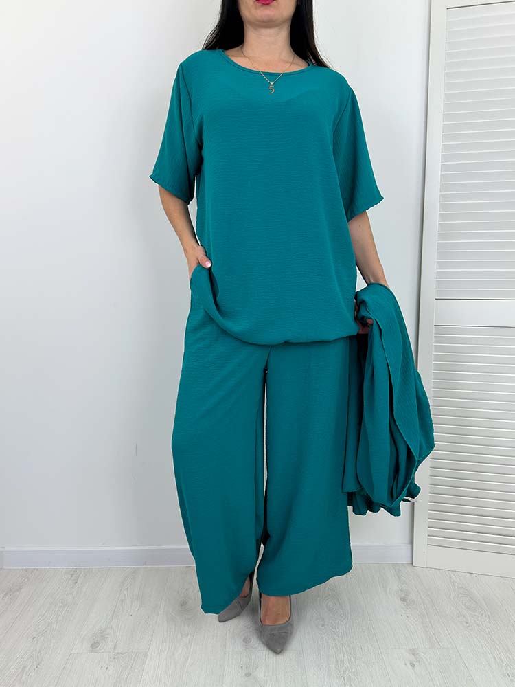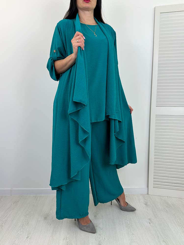 HANNA ZWIEWNY KOMPLET NARZUTKA + SPODNIE+BLUZKA (3 CZĘŚCIOWY)