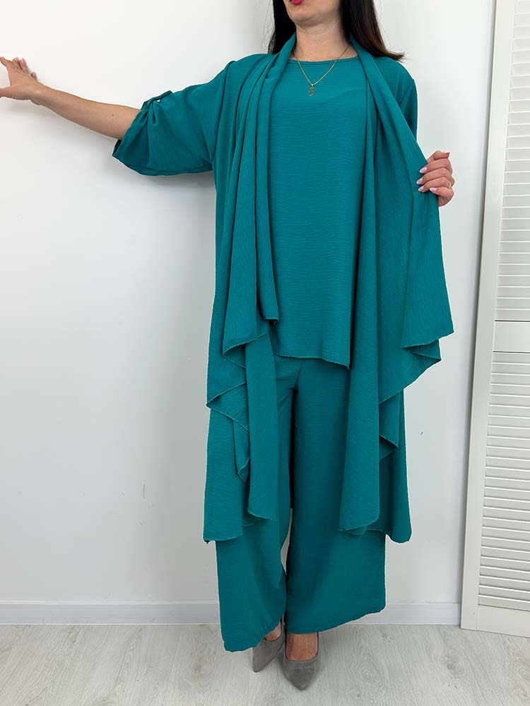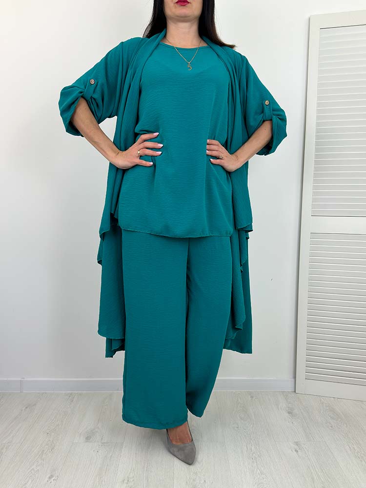 KOMPLET HANNA ELEGANCKI narzutka +spodnie +bluzka morski