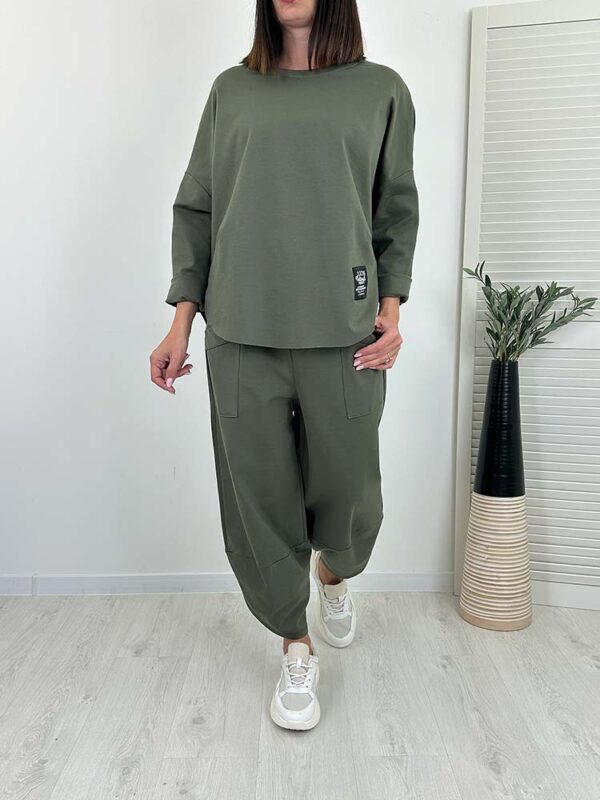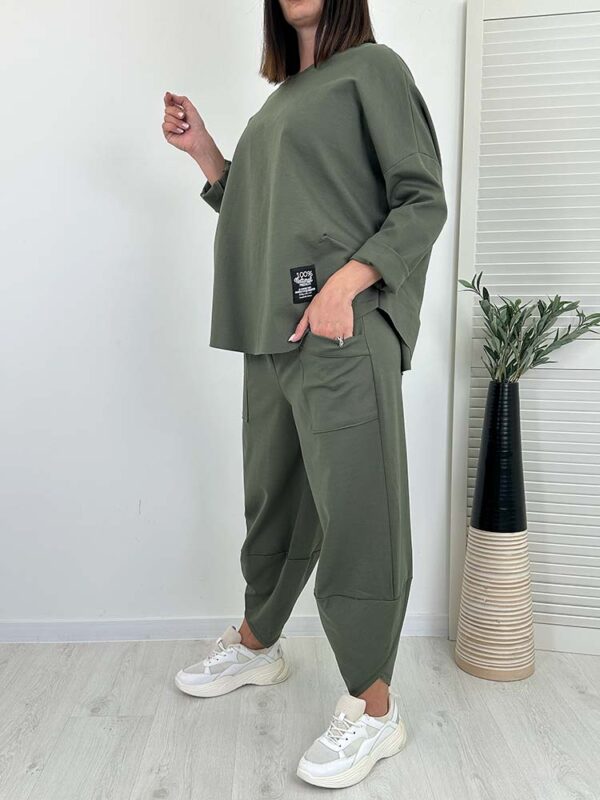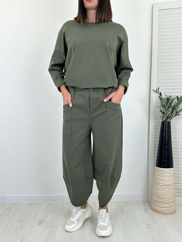 - spodnie posiadają wsuwane kieszenie, w pasie gumka, model do kostki , krój tulipany
