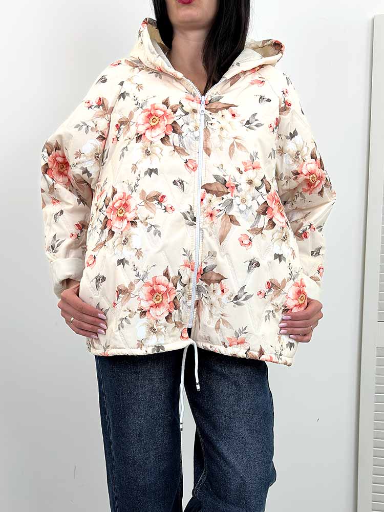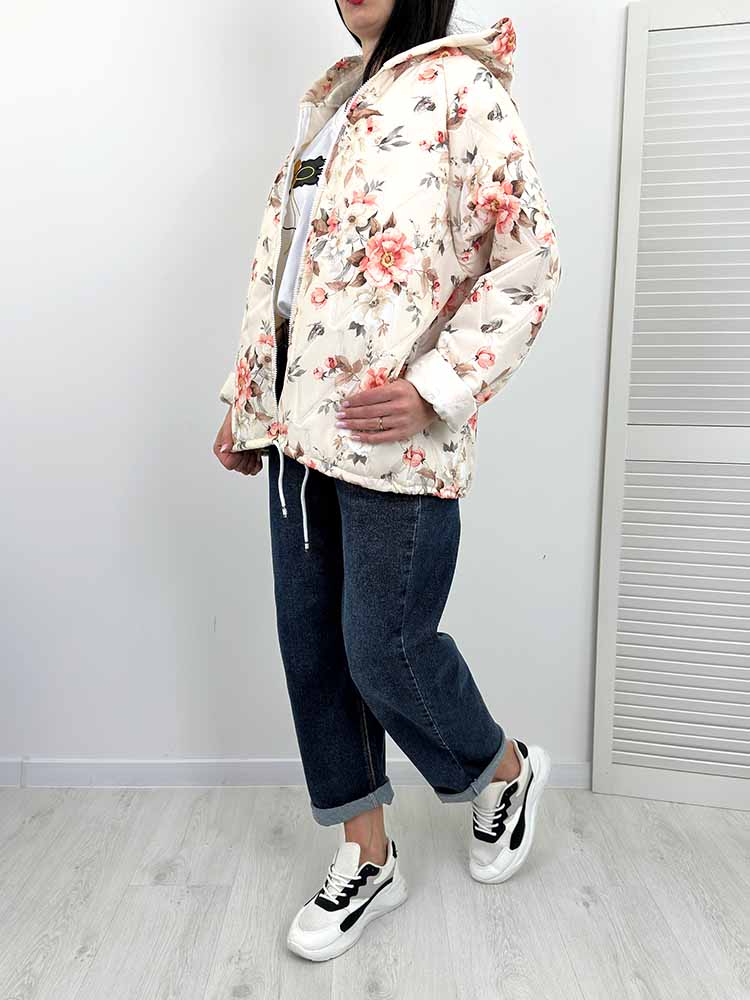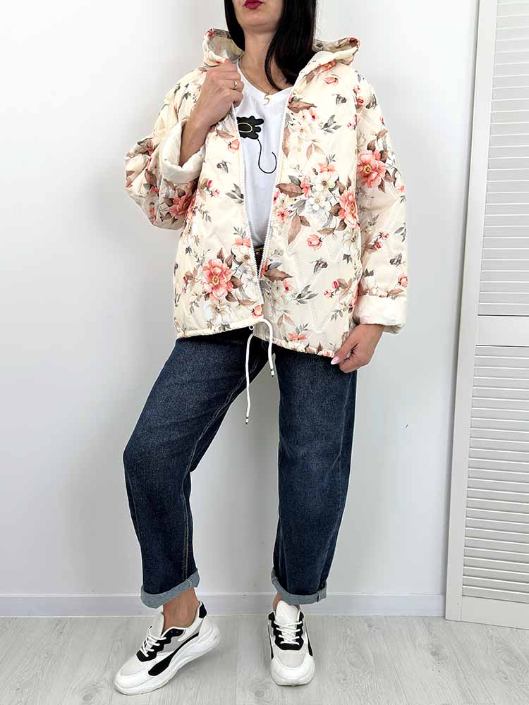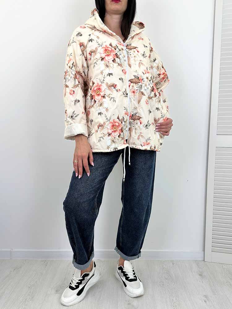 Sklep / Moda / Okrycia wierzchnie / FLORA kurtka w kwiaty bombka wiosenna beżowa