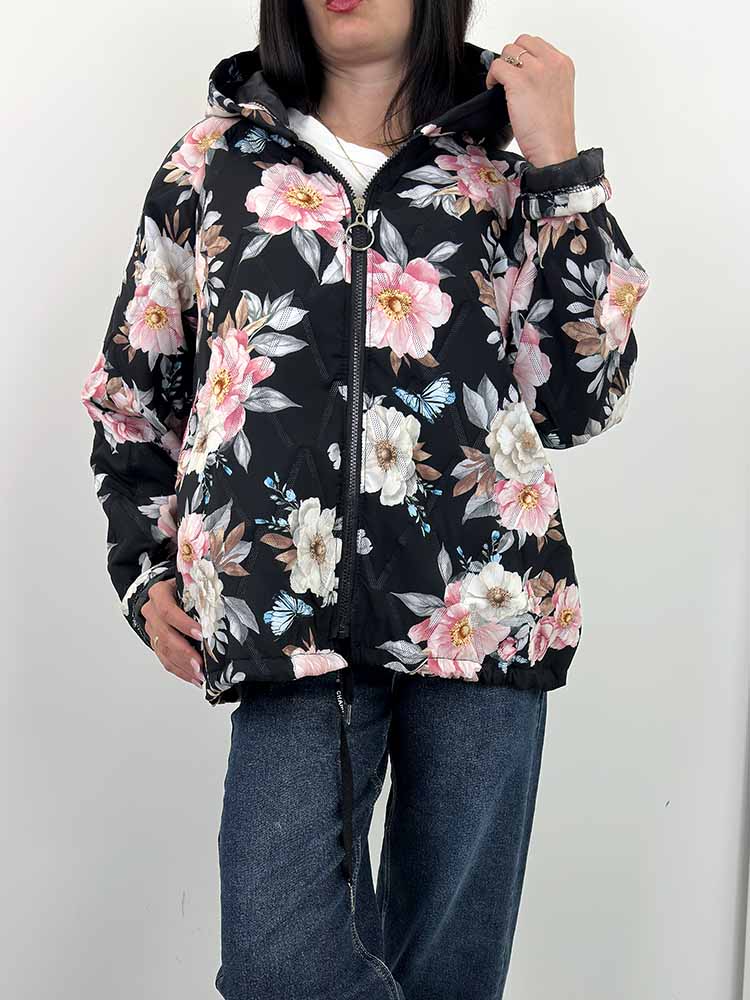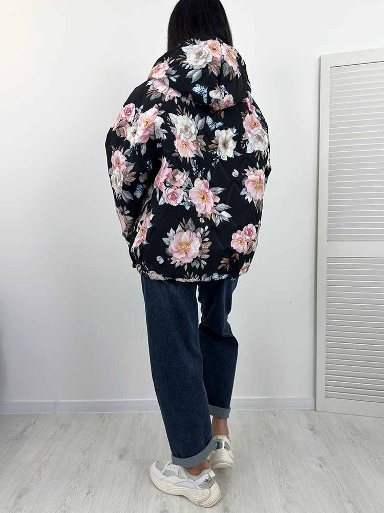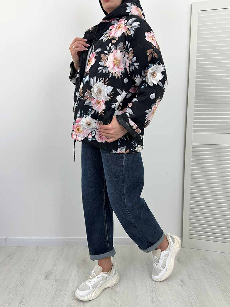 Sklep / Moda / Okrycia wierzchnie / FLORA kurtka w kwiaty bombka wiosenna czarna