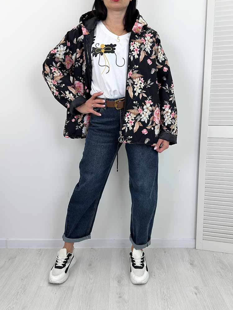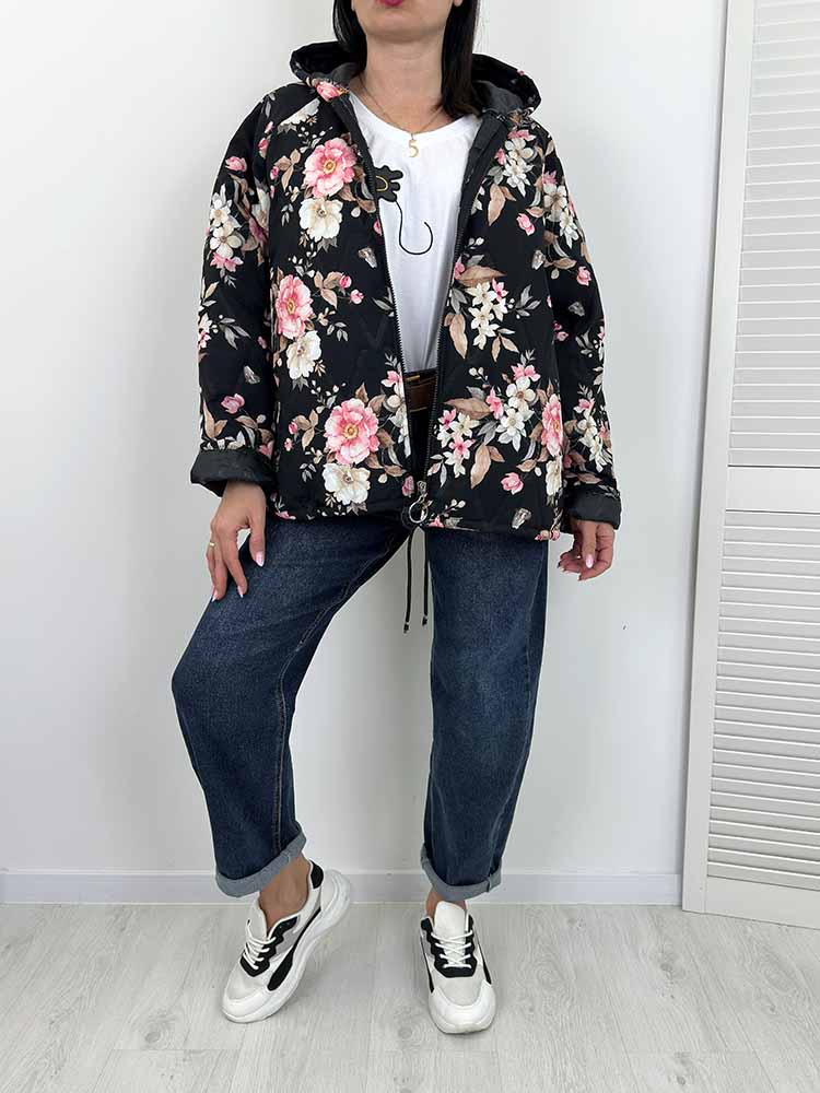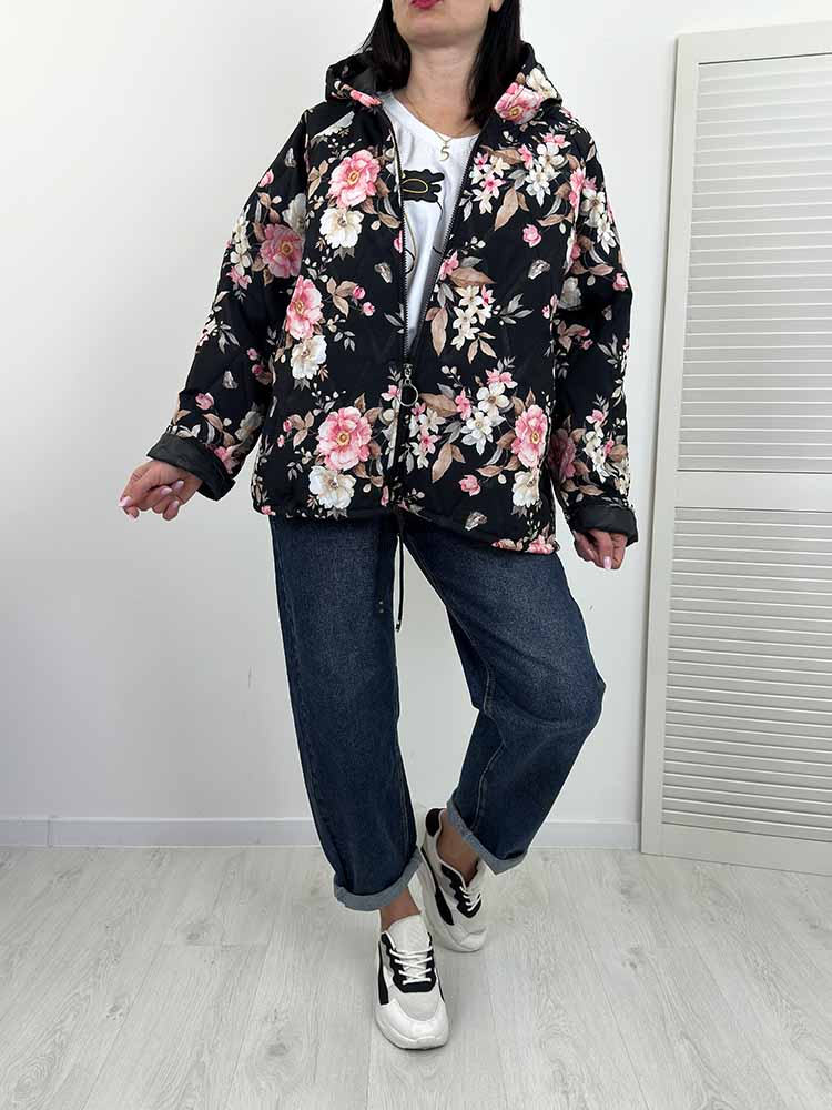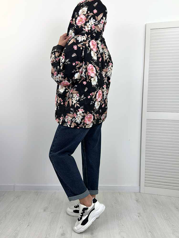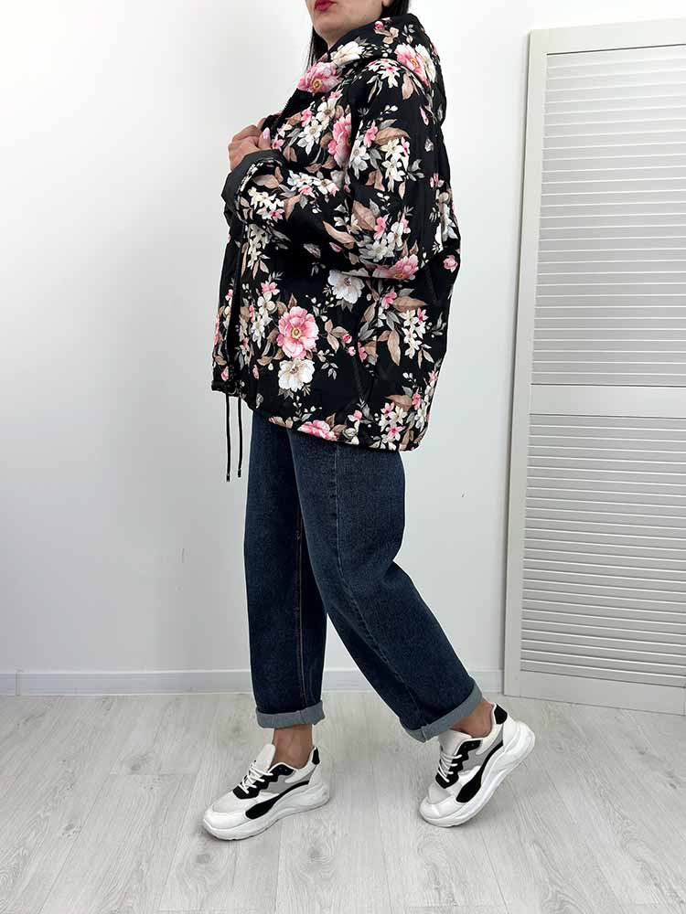Sklep / Moda / Okrycia wierzchnie / FLORA kurtka w kwiaty bombka wiosenna czarna