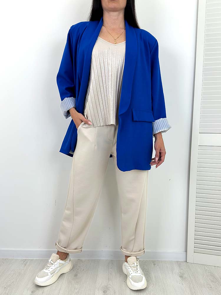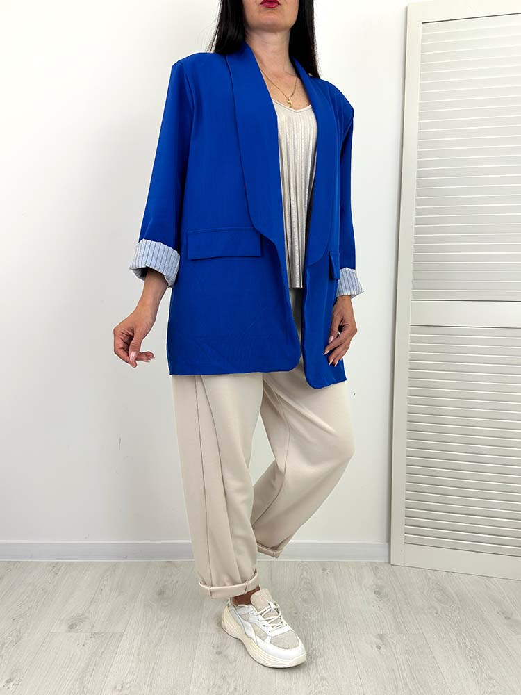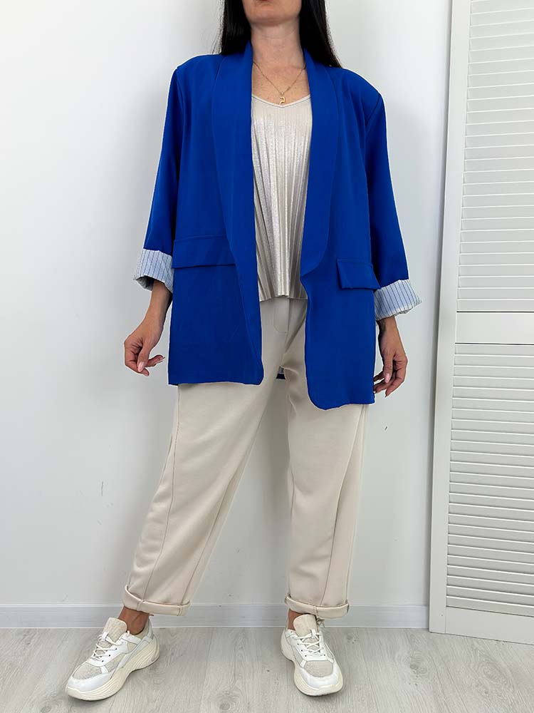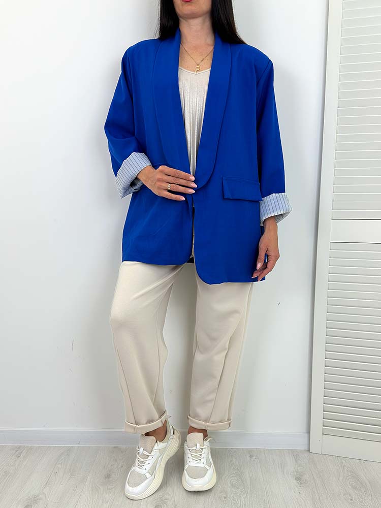Wygodna i świetnie skrojona, o klasycznym fasonie. Podwijane rękawki z paskami wzorem .