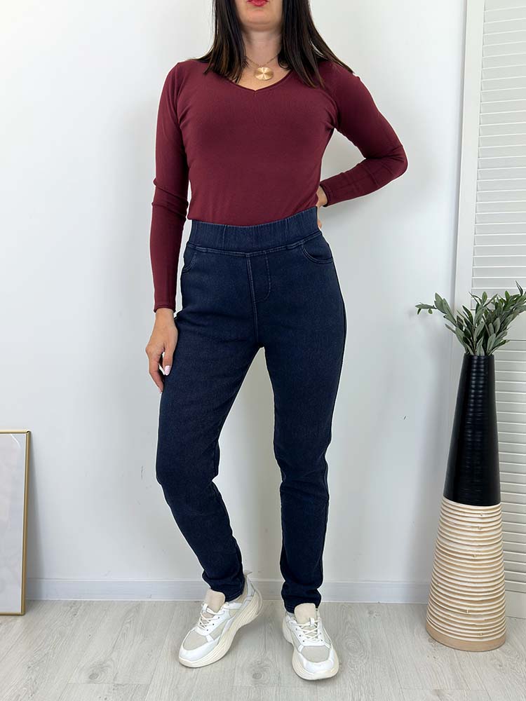 Jeansy, spodnie  z wysokim stanem OCIEPLANE PLUSZEM  . Model bardzo elastyczny z kieszeniami , wyższy stan i gumka w pasie zapewni komfort noszenia.