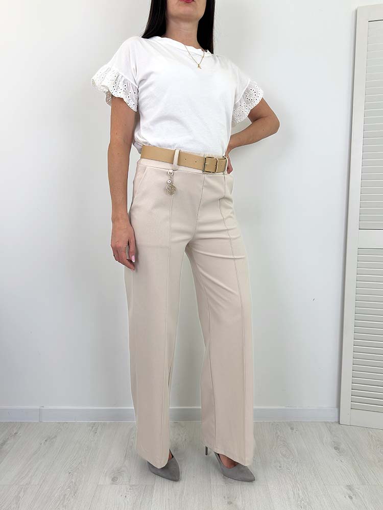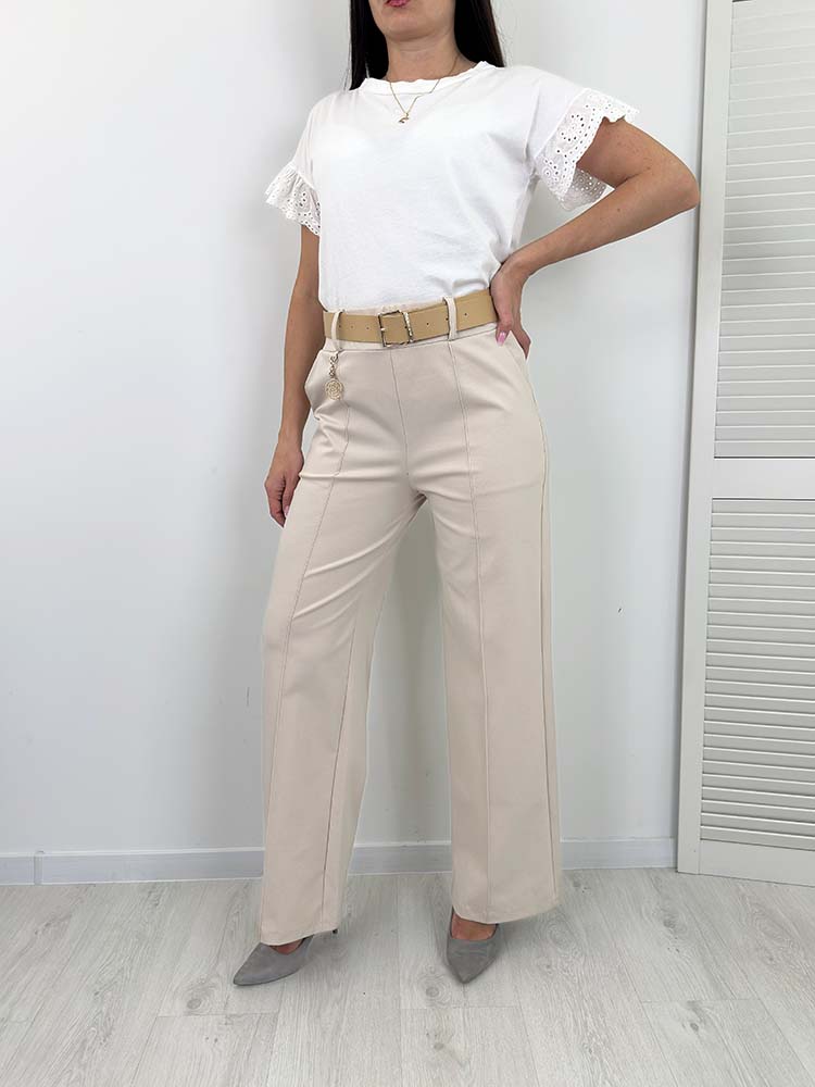 ELSA SPODNIE SZEROKIE z paskiem beżowe