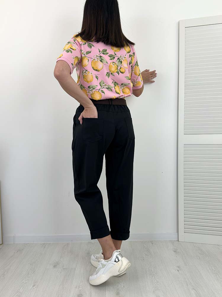 Sklep / Moda / Spodnie / spodenki / MILANO spodnie bawełniane z paskiem CZARNE