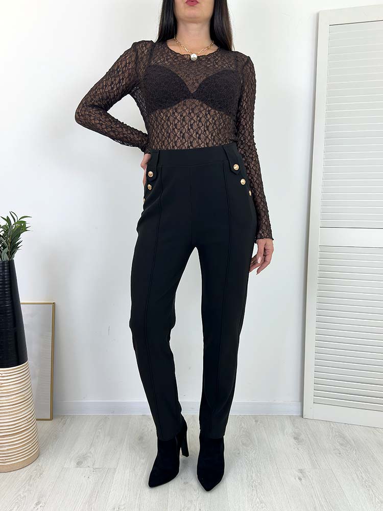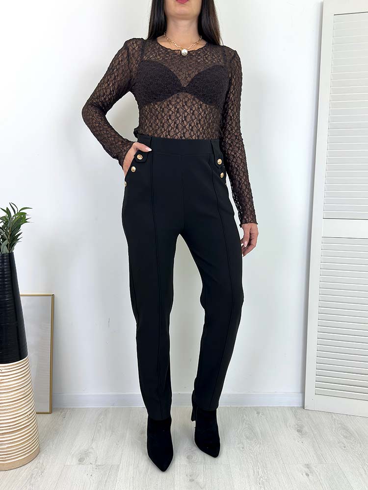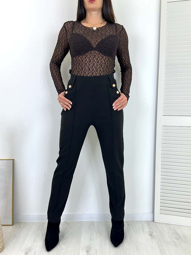 Materiał jest mięciutki, przyjazny dla ciała, elastyczny Nie prześwitują , wysoki stan , zdobiony guzikami , spodnie z wysokim stanem i kieszeniami