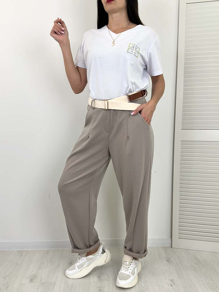 Spodnie bardzo uniwersalne pasują do adidasów jak i do obuwia na obcasie , modne wygodne , świetnie układają się. W modnym miejskim stylu. Mekki elastyczny materiał , luźny krój w udach i biodrach , wysoki stan must have w twojej garderobie