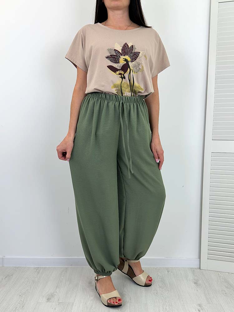 SPODNIE szerokie, luźne , alaldynki z gumka na dole