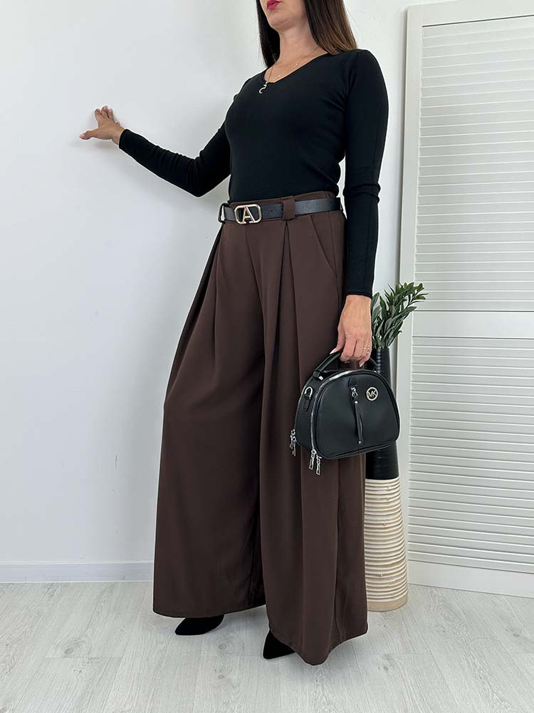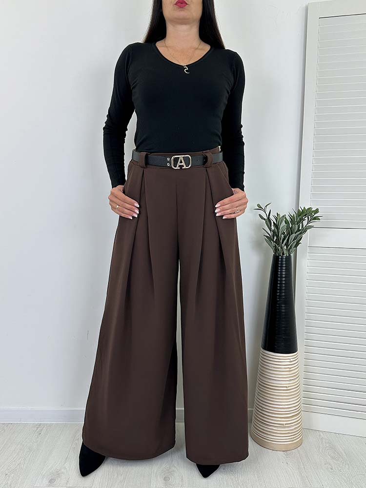 Sklep / Moda / Spodnie / spodenki / SZWEDY SPODNIE SZEROKIE z paskiem czekolada