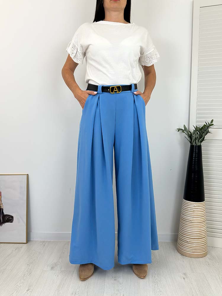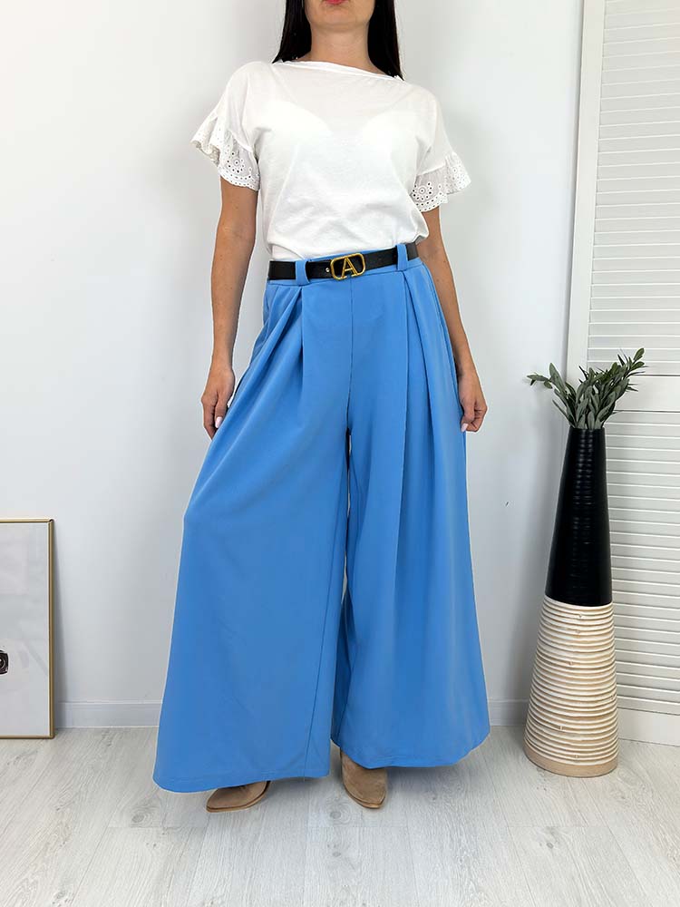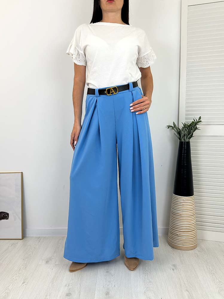 Sklep / Moda / Spodnie / spodenki / SZWEDY SPODNIE SZEROKIE z paskiem niebieskie