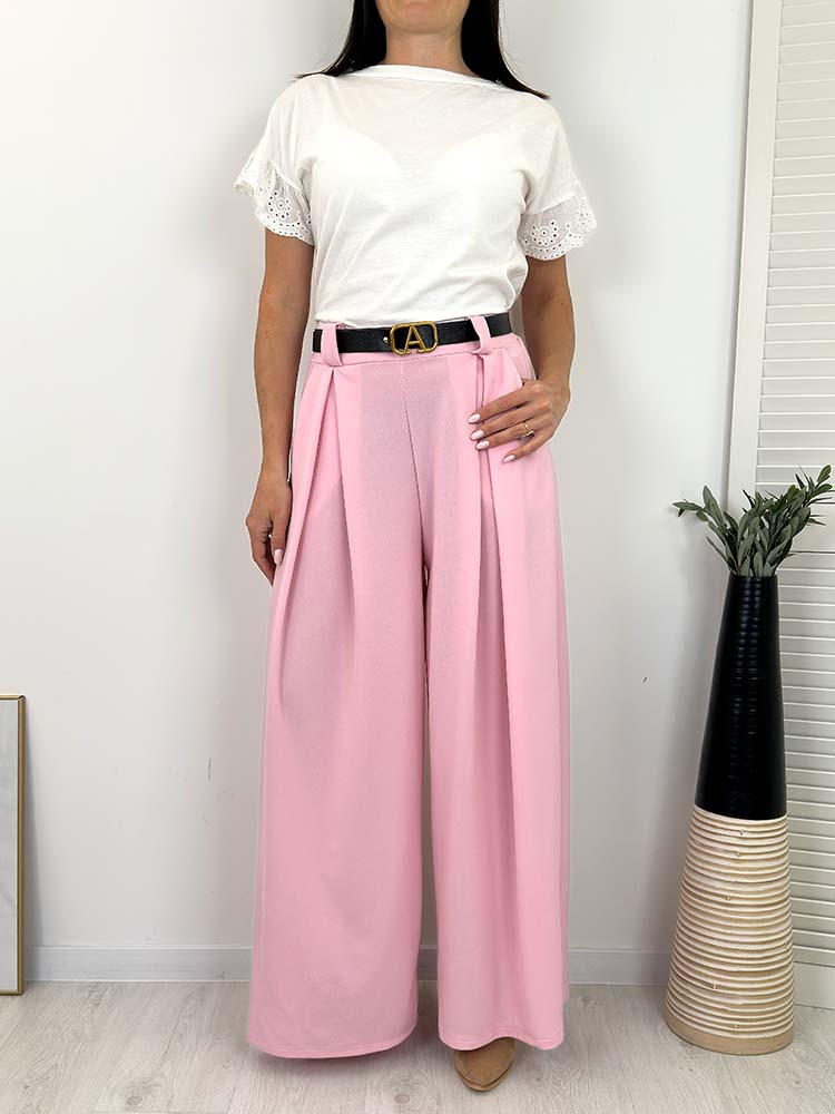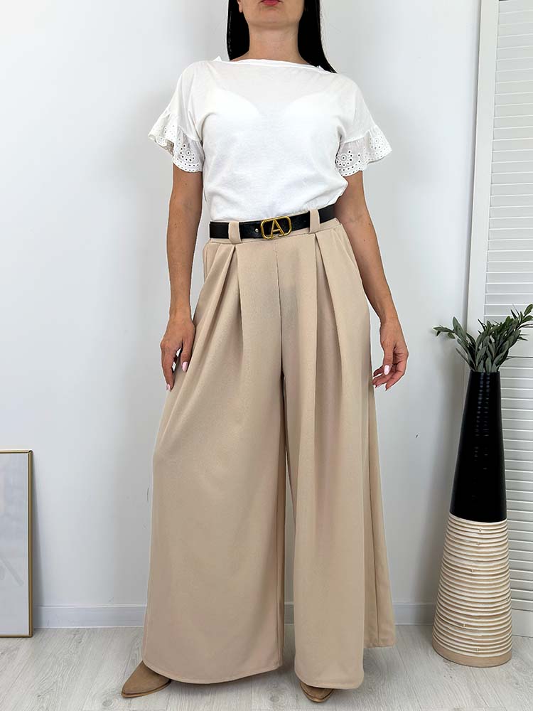 Spodnie bardzo uniwersalne , model z szeroka nogawka , modne wygodne , świetnie układają się.