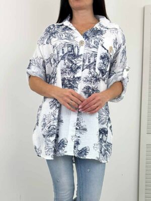 Bluzka wykonana z tkaniny o lekko połyskującej fakturze która mieni sie w świetle