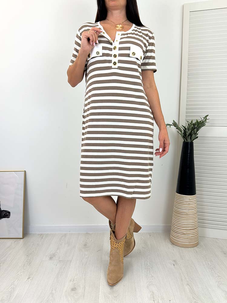 Sukienka ze złotymi rozpinanymi napami . Stylowa i wygodna idealna na każdą okazje ! Wykonana z miękkiej elastycznej bawełny w prążek . Kobieca i subtelna . Sukienka łączy w sobie klasyczna elegancje z nowoczesnymi detalami.