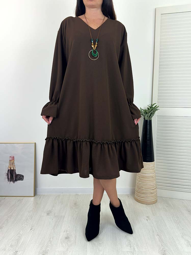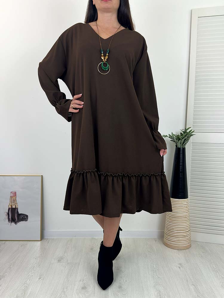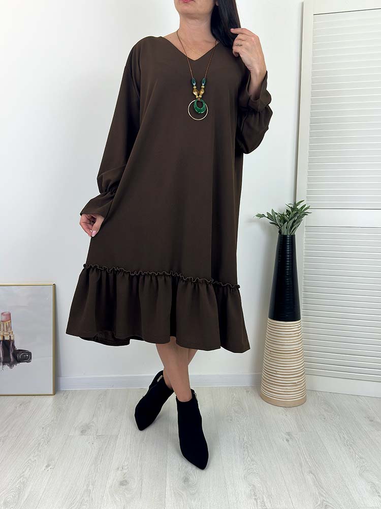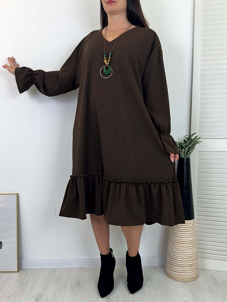 Sklep / Moda / Sukienki / RIMI Sukienka PLUS SIZE z falbanka czekolada