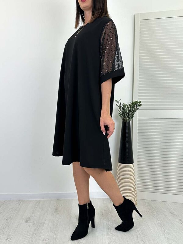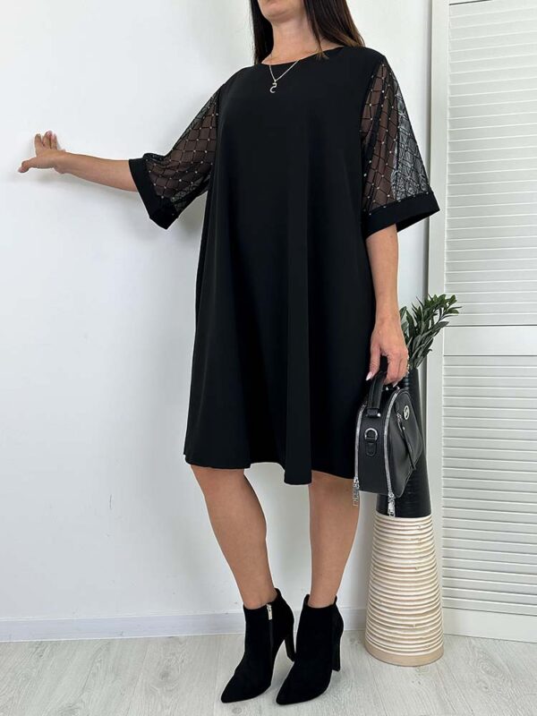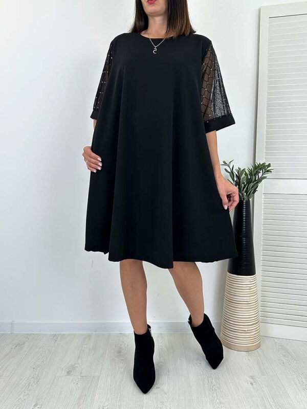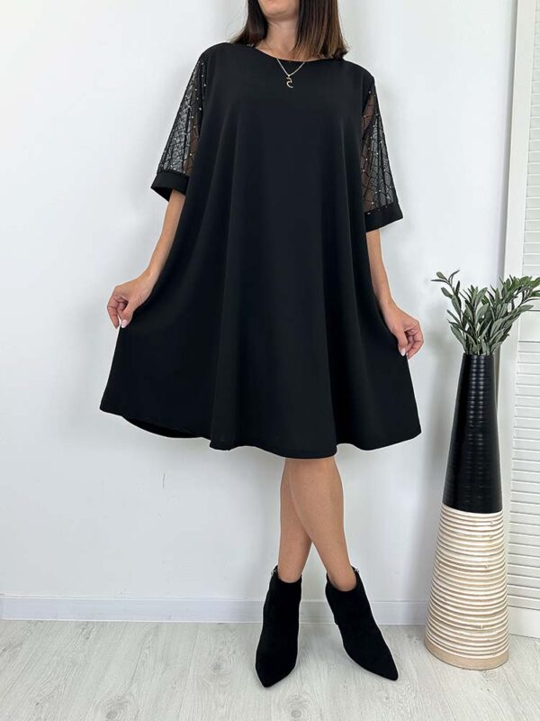 SUKIENKA DIEGO czarna trapezowa siateczkowe rękawy