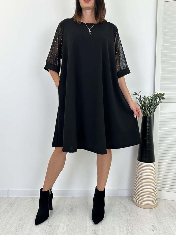 Sklep / Bestsellery / SUKIENKA DIEGO czarna trapezowa siateczkowe rękawy