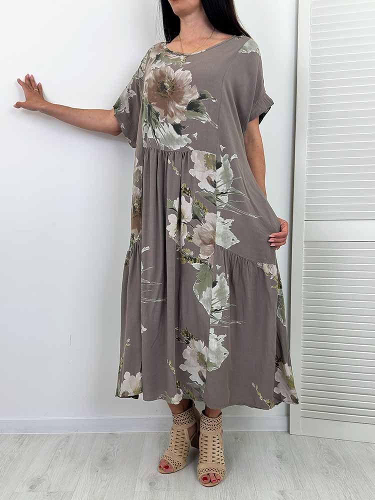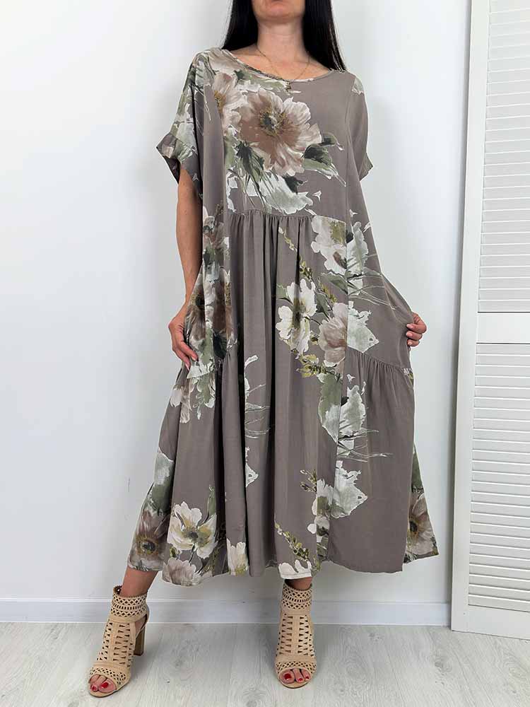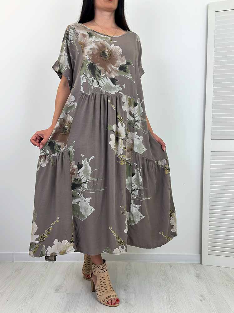 SUKIENKA ELISON maxi w kwiaty fango plus sizie