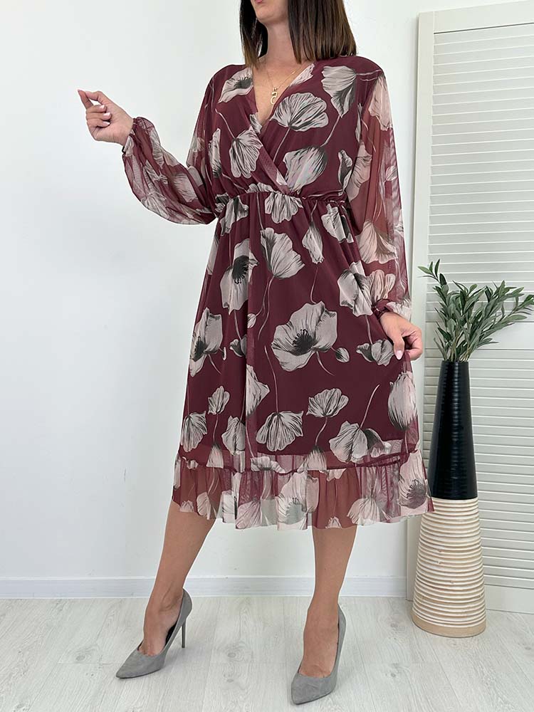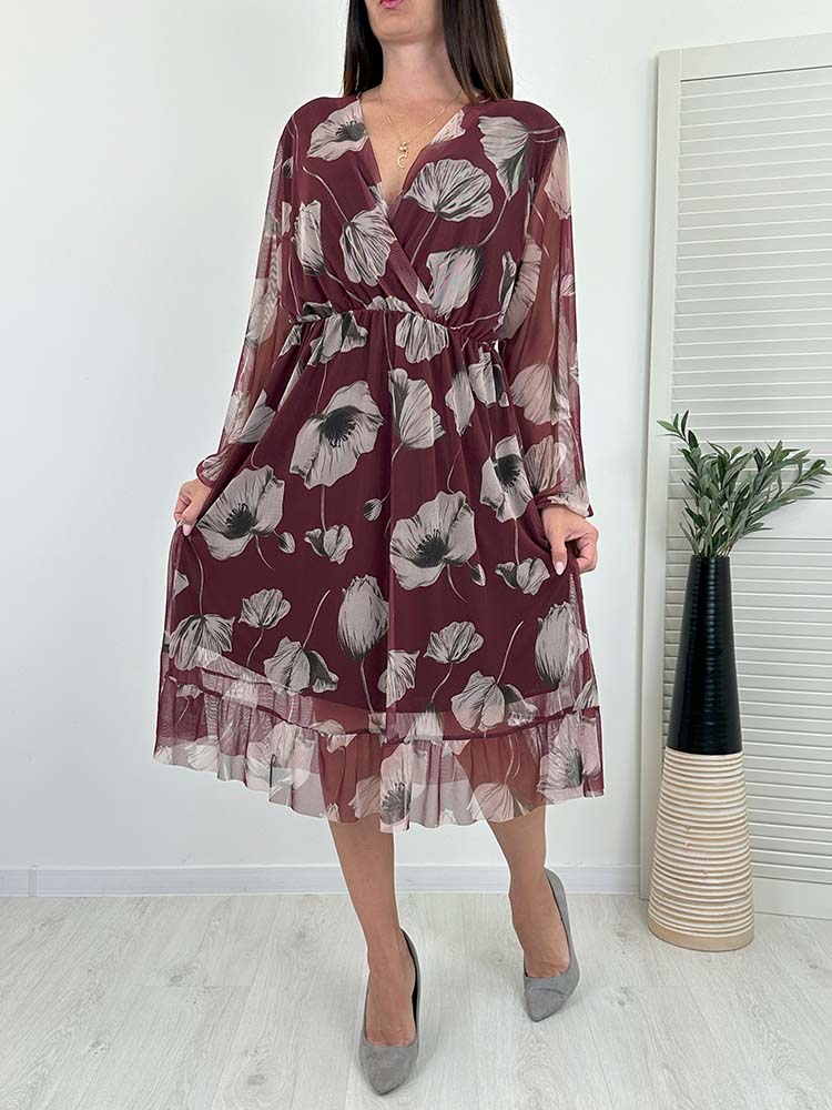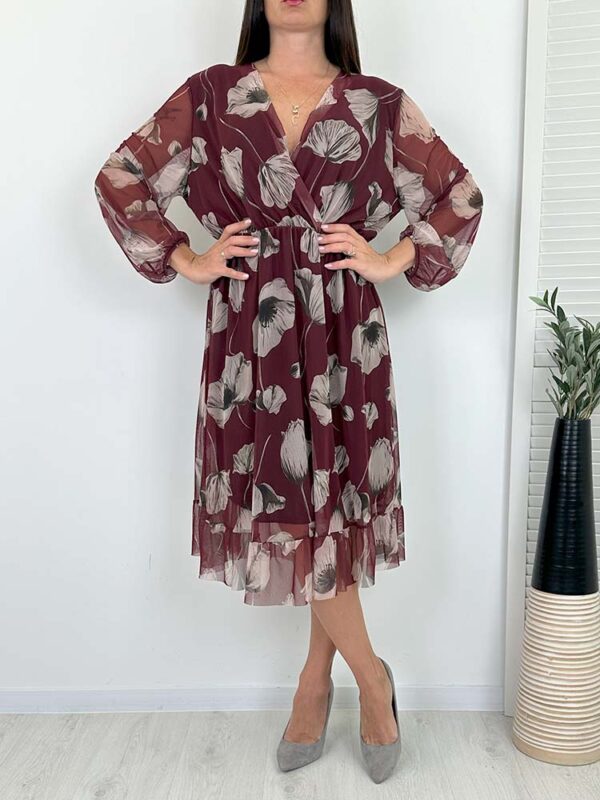 Sukienka KLARA w piękne wzory w kwiatu , V dekolt