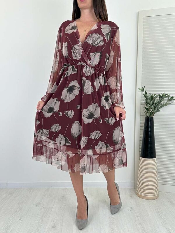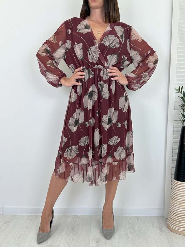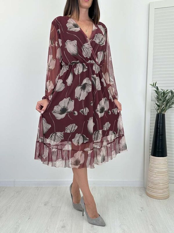 Niezwykle efektowna sukienka, świetnie sprawdzi się przy wielu okazjach.Rękawy wykończone gumeczką , sukienka jest niezwykle wygodna i praktyczna. Dzięki przyjemnemu materiałowi, lekkiemu fasonowi i uroczej falbance na dole, sukienka prezentuje się bardzo kobieco .