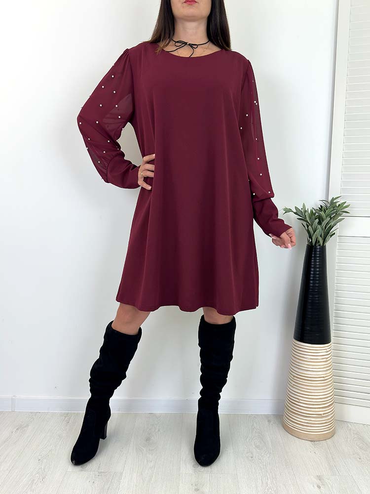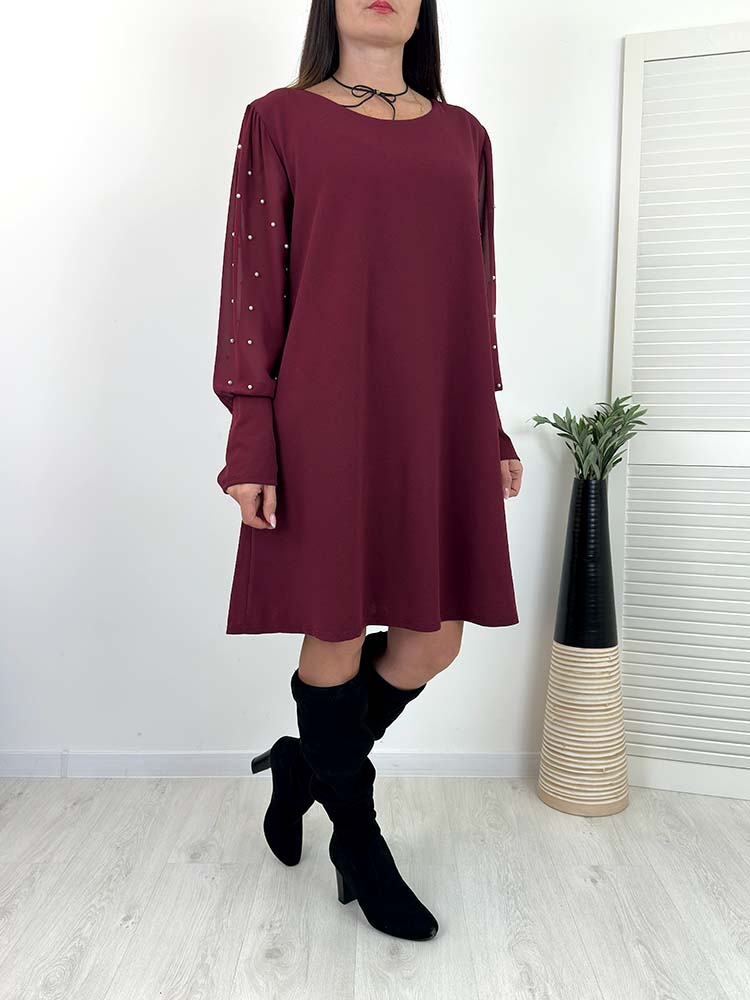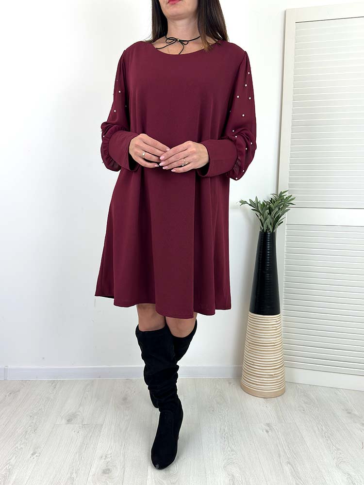 Sklep / Bestsellery / SUKIENKA SUZI bordowa trapezowa perełki na rękawach
