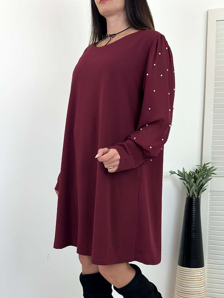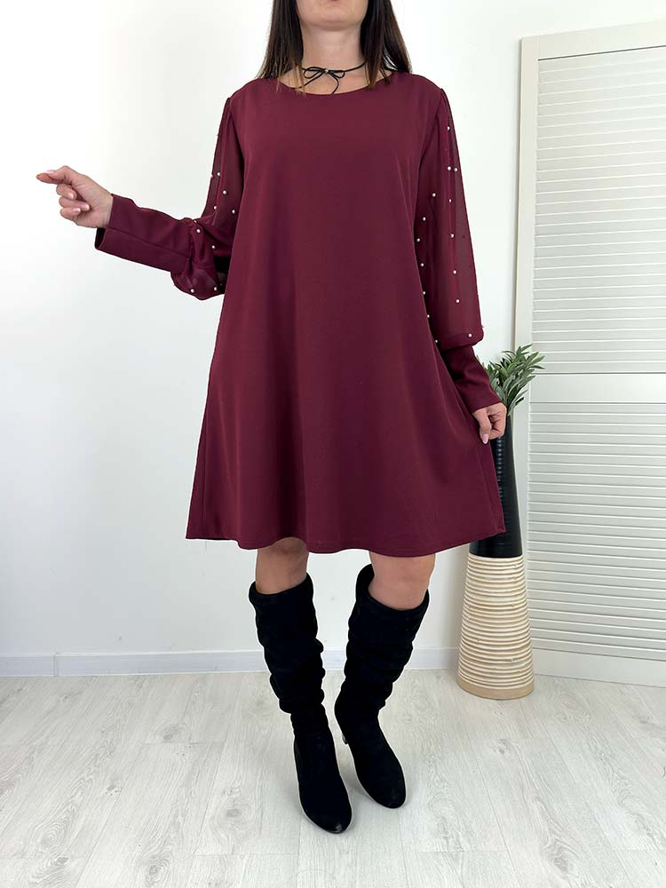 SUKIENKA SUZI bordowa trapezowa perełki na rękawach