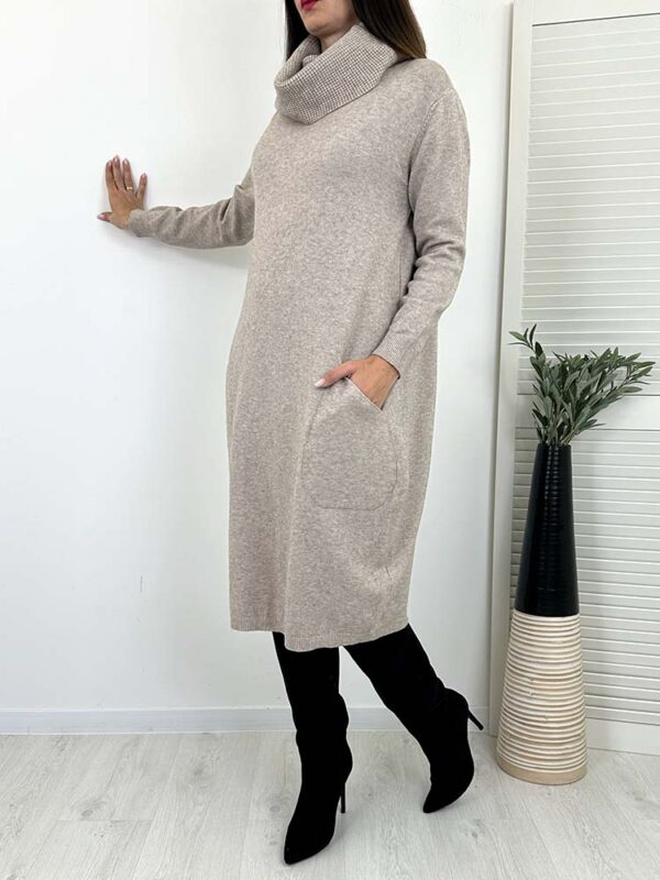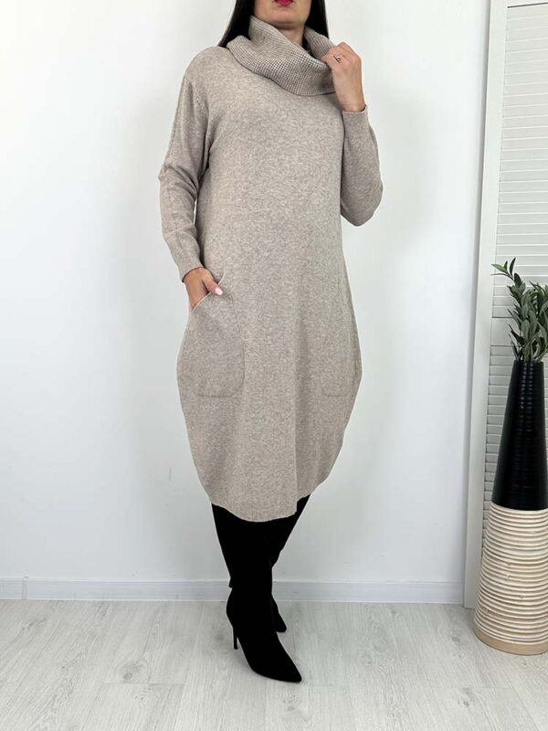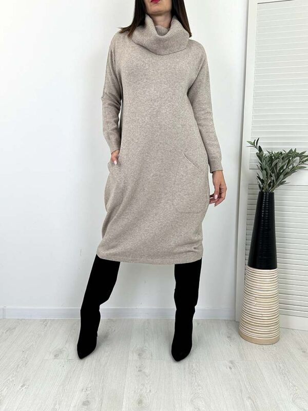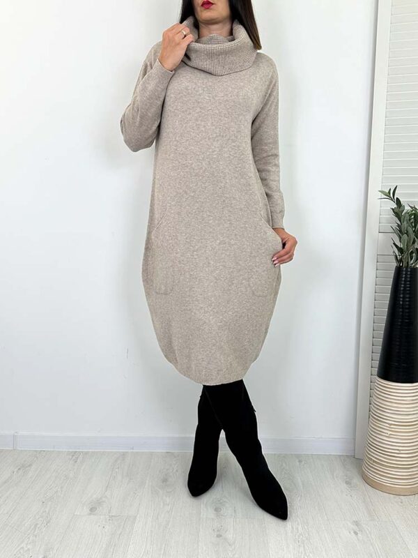 WALDA DZIANINOWA SUKIENKA z golfem beżowa