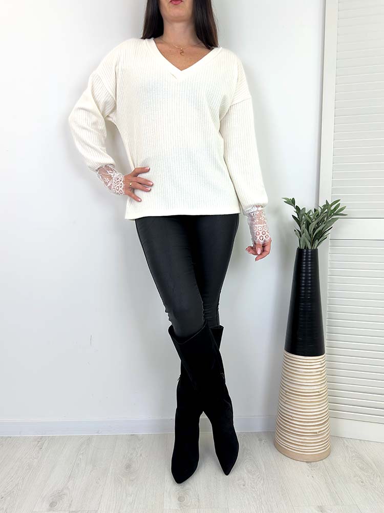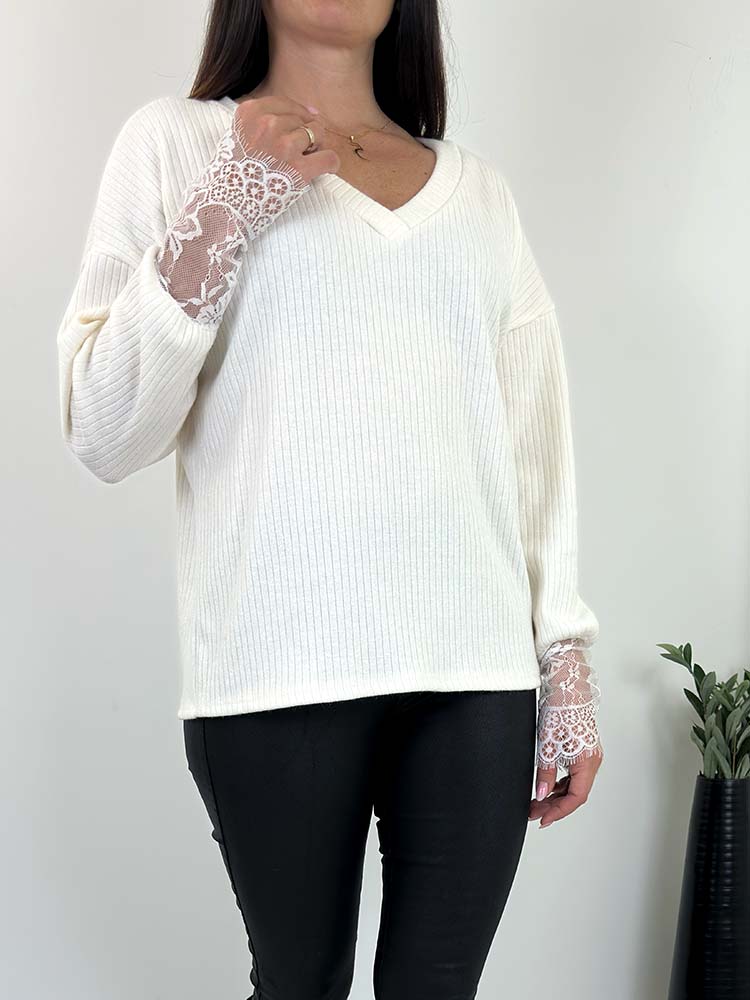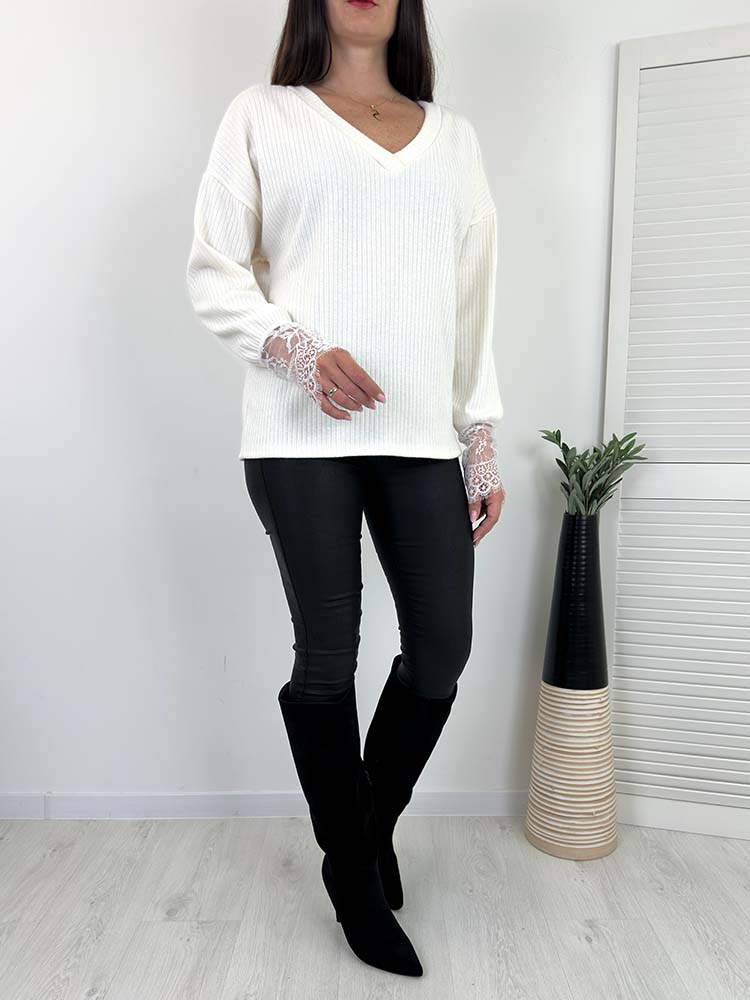 Sklep / Moda / Swetry / IZA SWETER kremowy koronka rękawy