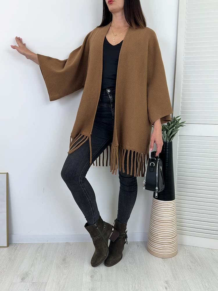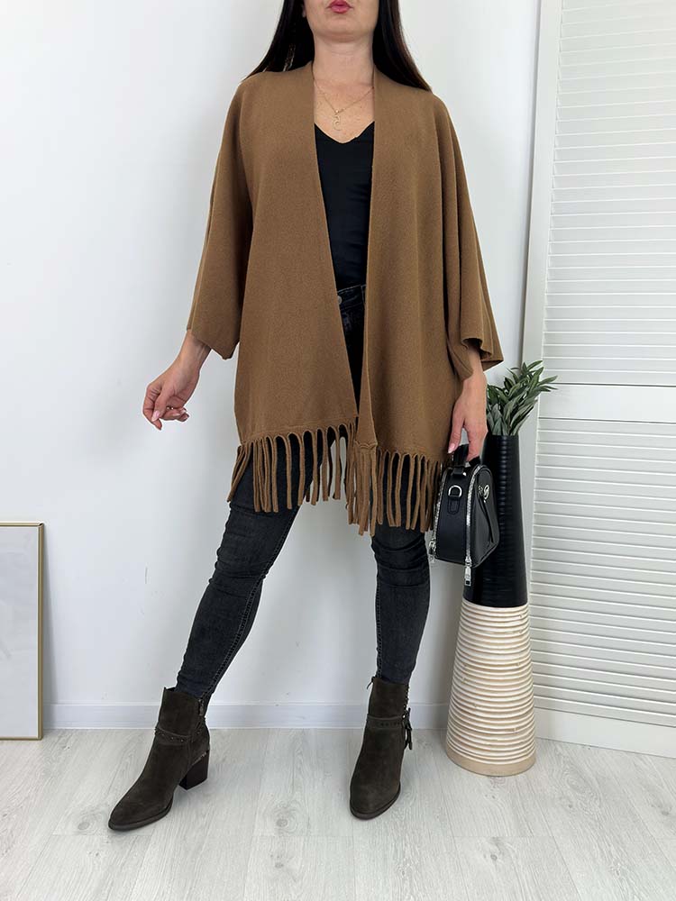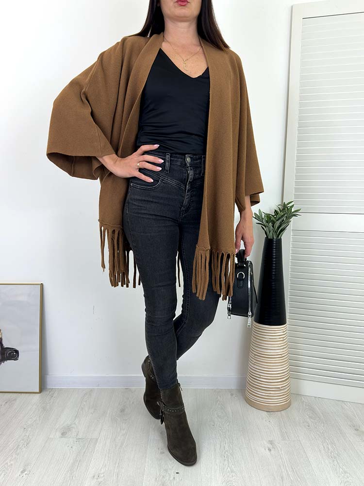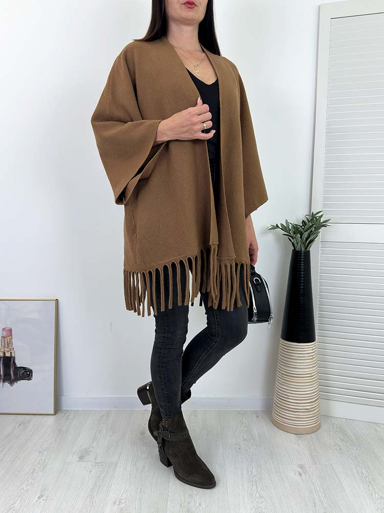PONCZO, KARDIGAN Z FRĘDZLAMI W STYLU BOHO