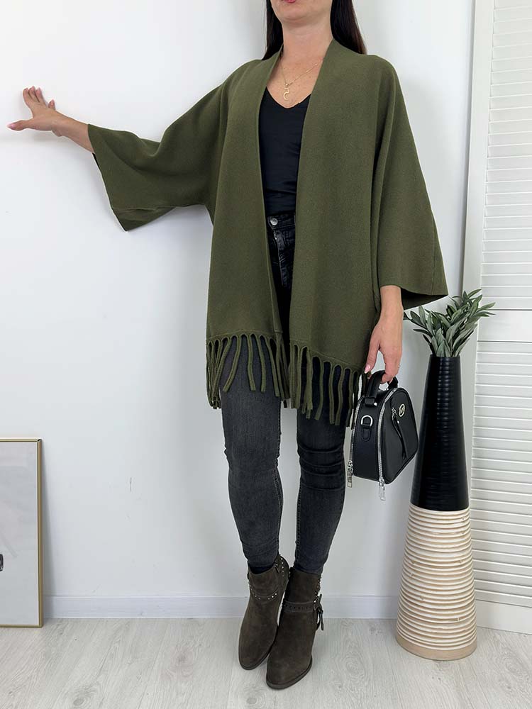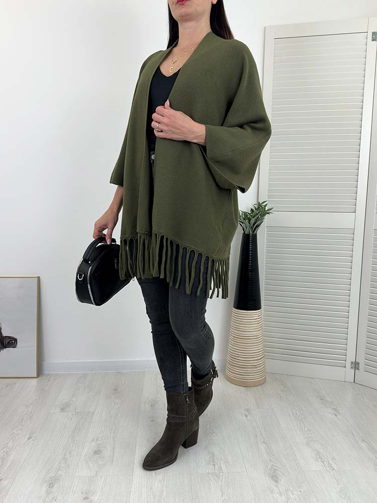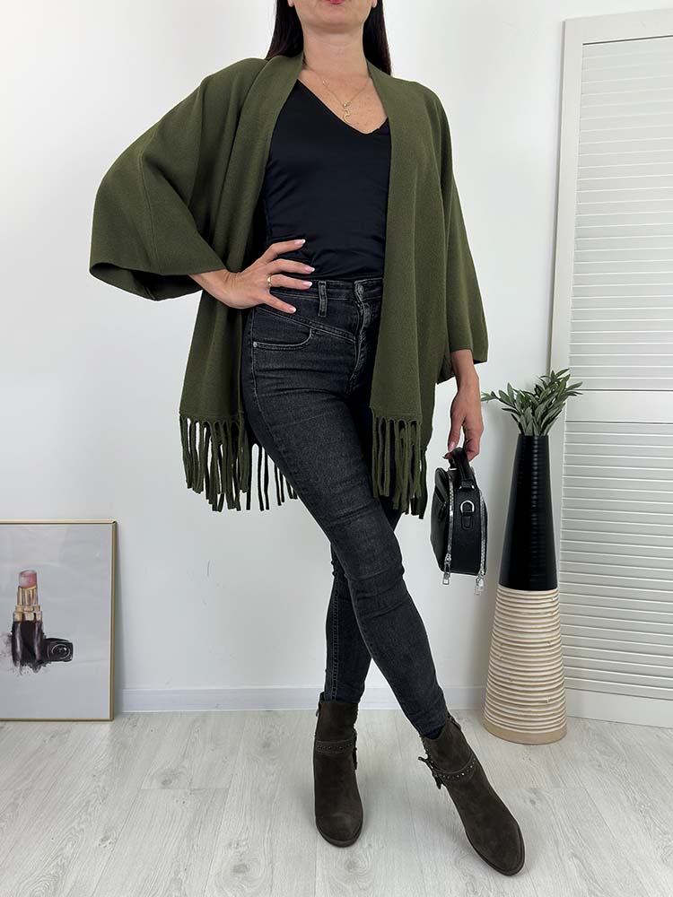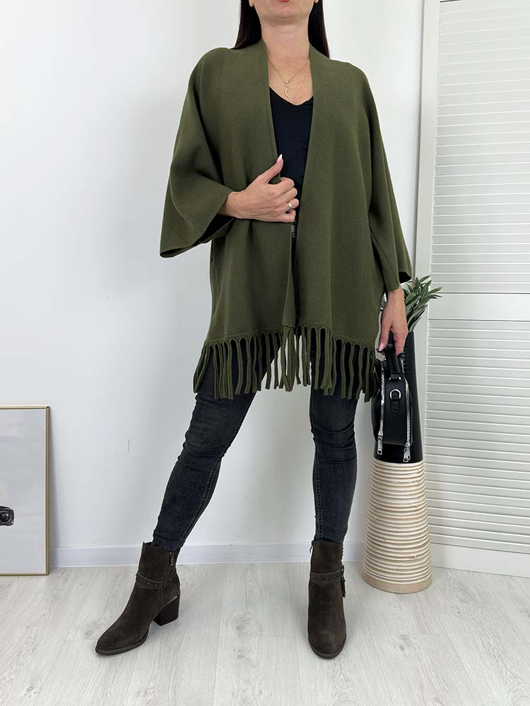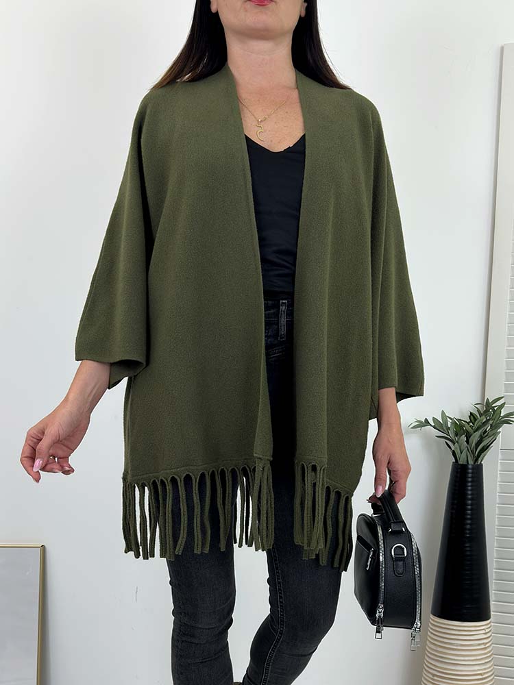 PONCZO, KARDIGAN Z FRĘDZLAMI W STYLU BOHO