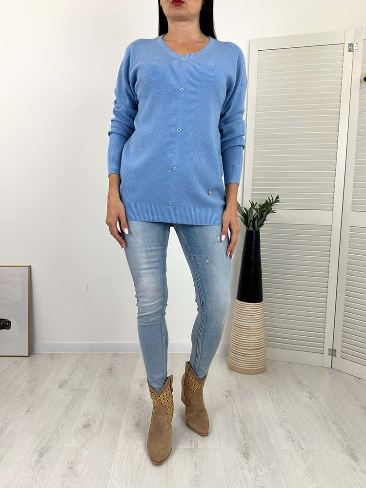 WYGODNY SWETEREK wykonany z miękkiej przędzy Ozdobne delikatne guziczki , dekolt okrągły.