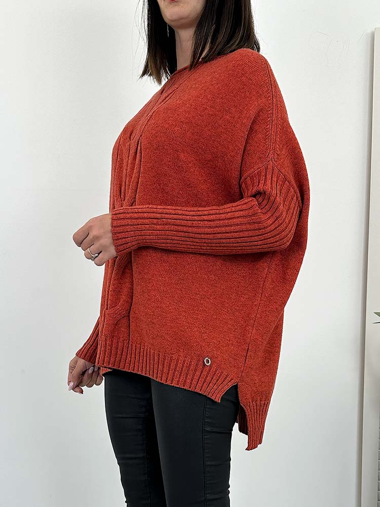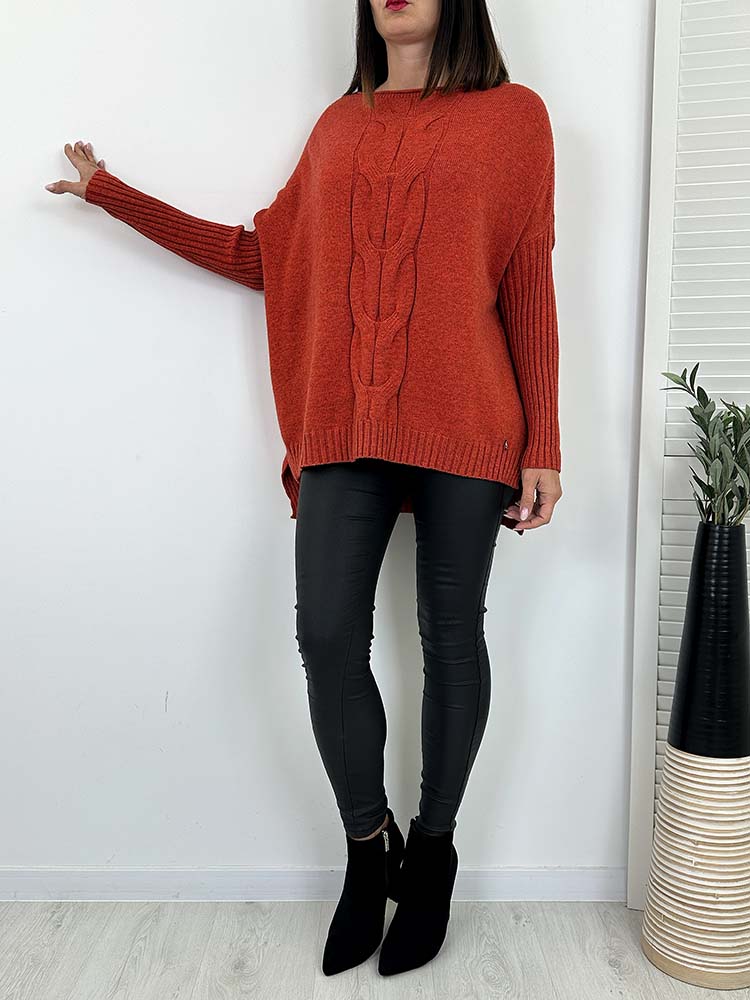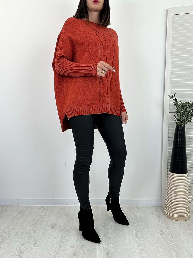 Sklep / Moda / Swetry / SWETER ELORA z warkoczem oversize ceglany