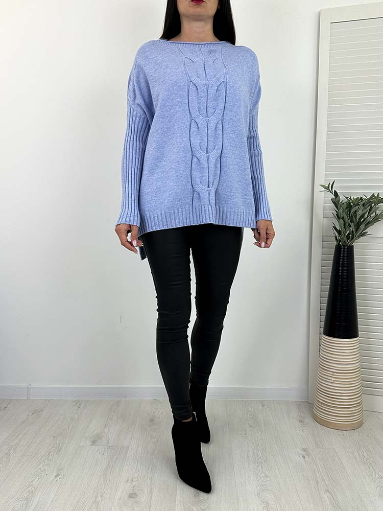 Sweter oversize z warkoczowym splotem – model Elora 🧶