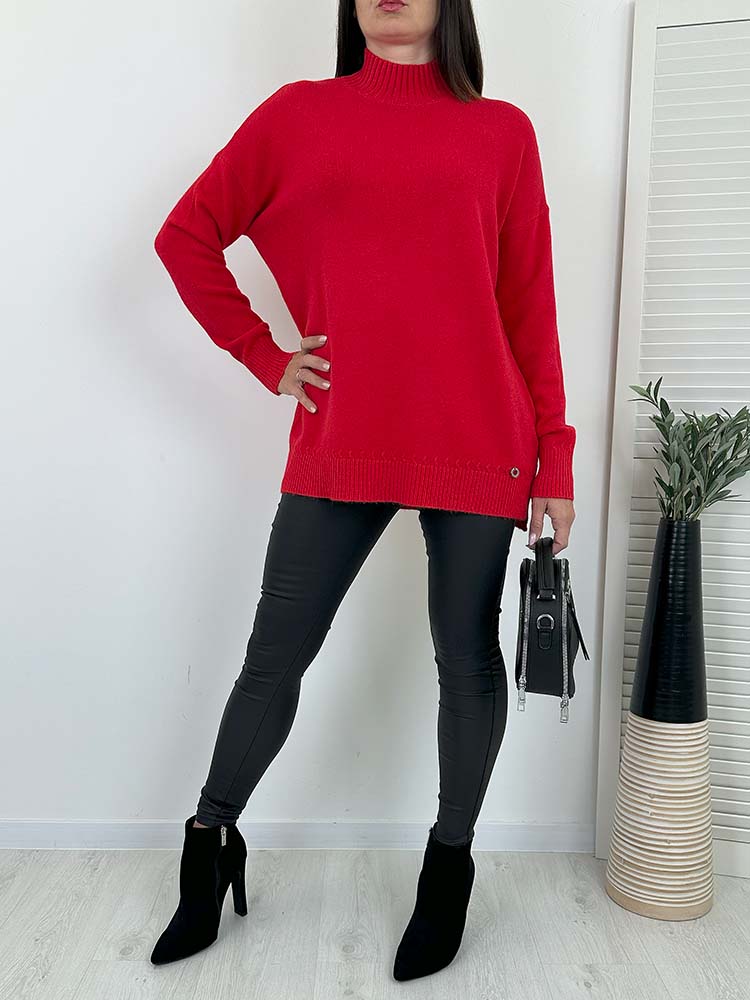 WYGODNY SWETEREK  wykonany z miękkiej przędzy . Dłuższy,  dekolt golfik (stójka)