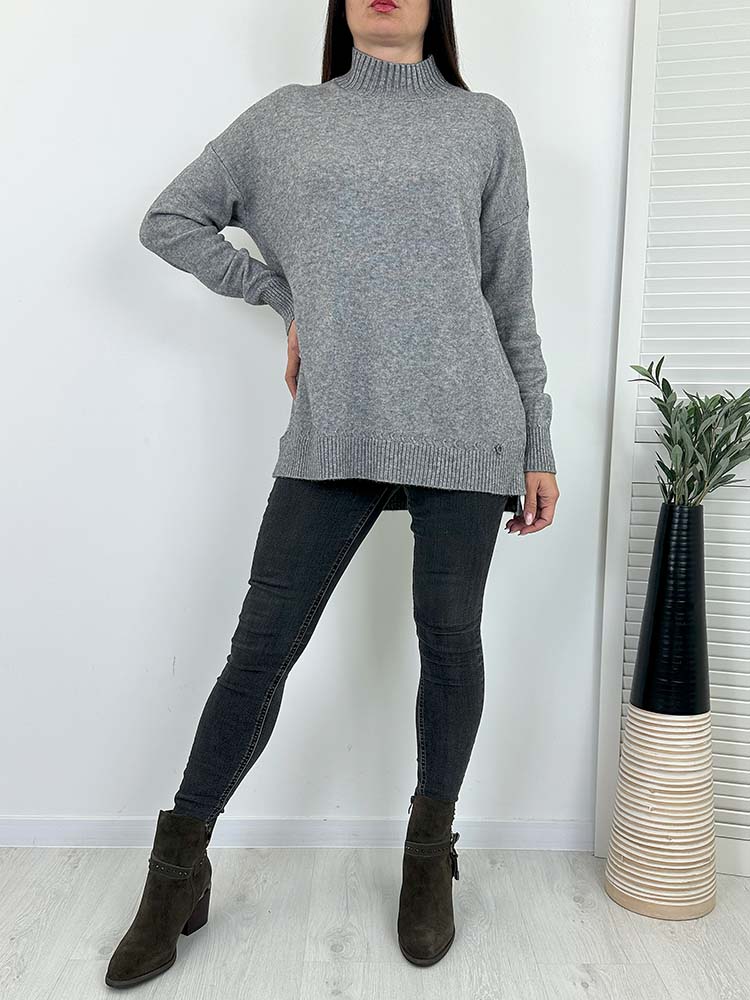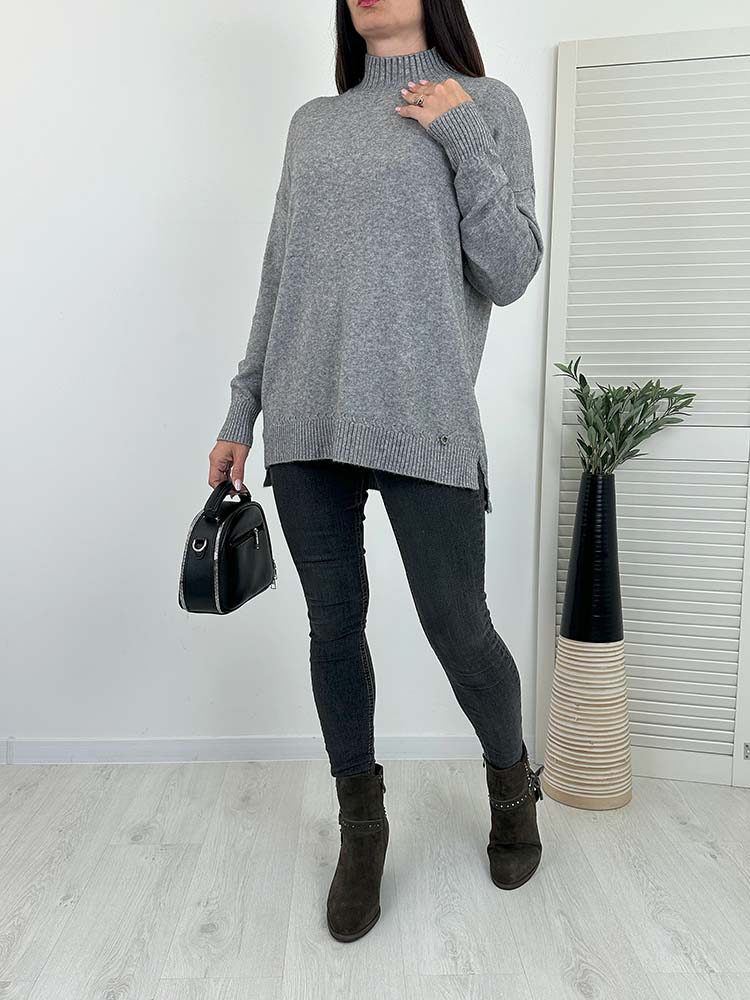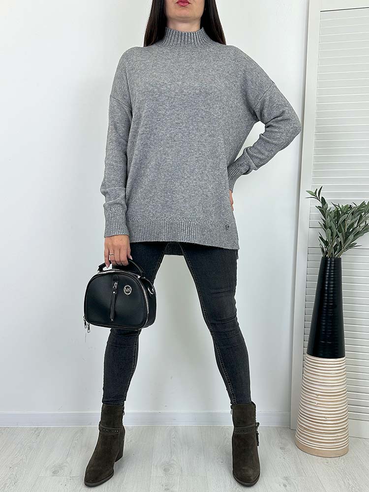 WYGODNY SWETEREK wykonany z miękkiej przędzy . Dłuższy, dekolt golfik (stójka)